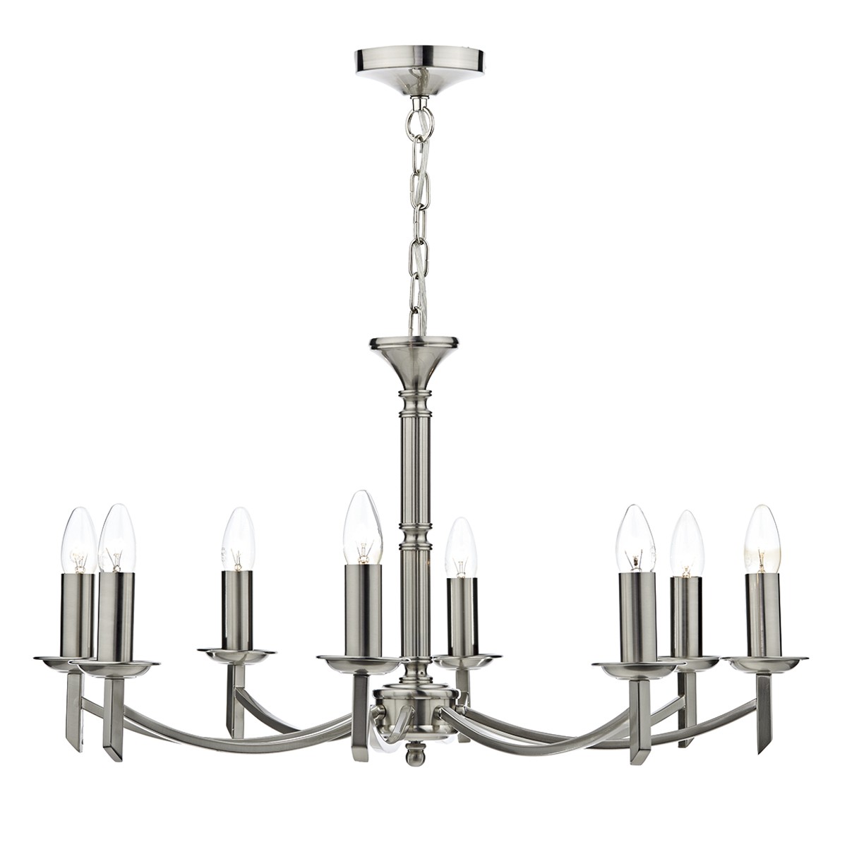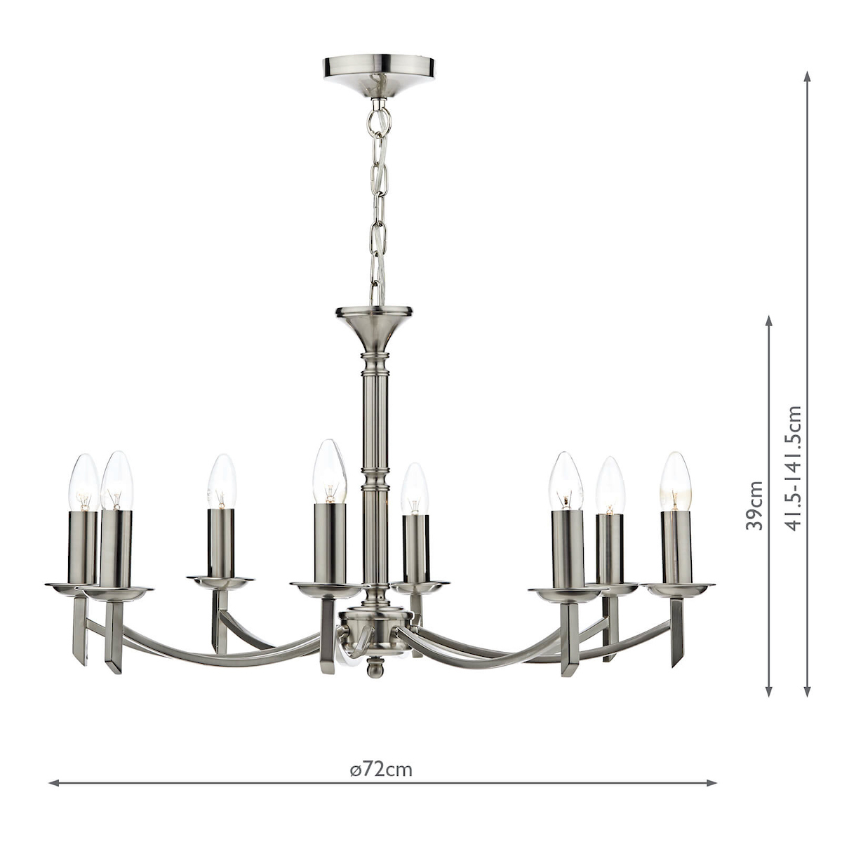 Lamp: 8 x 40W SES Candle or LED (Not included)