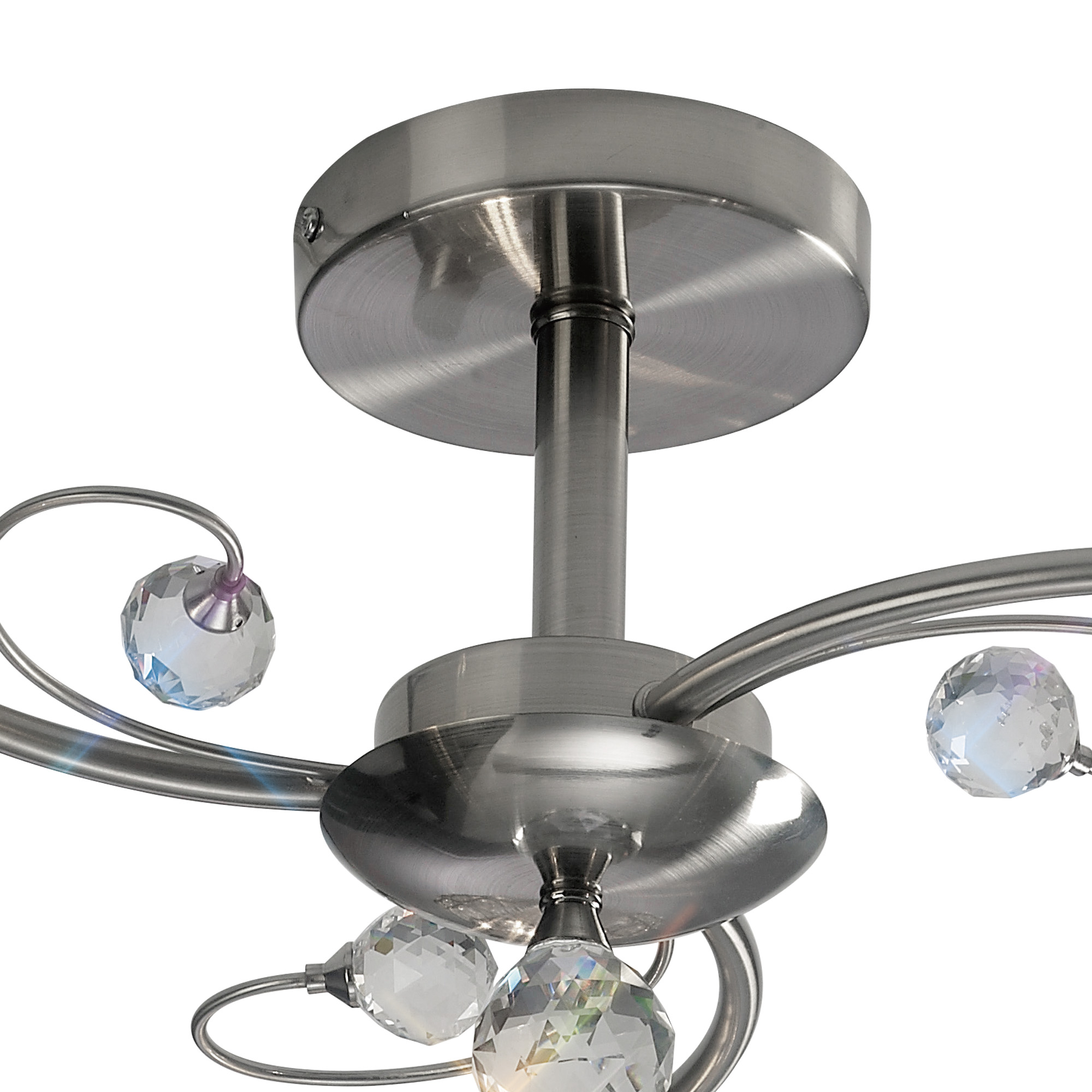 This suite of products has been carefully designed to ensure the wow factor is not impossible just because of low ceilings. The matt finish of Satin Nickel with the sparkle of the clear crystal is a combination that looks impressive. These items certainly offer the wow factor without disrupting the bank. Full range available from 5 & 8 Light ceiling light to single wall light and matching table lamp.