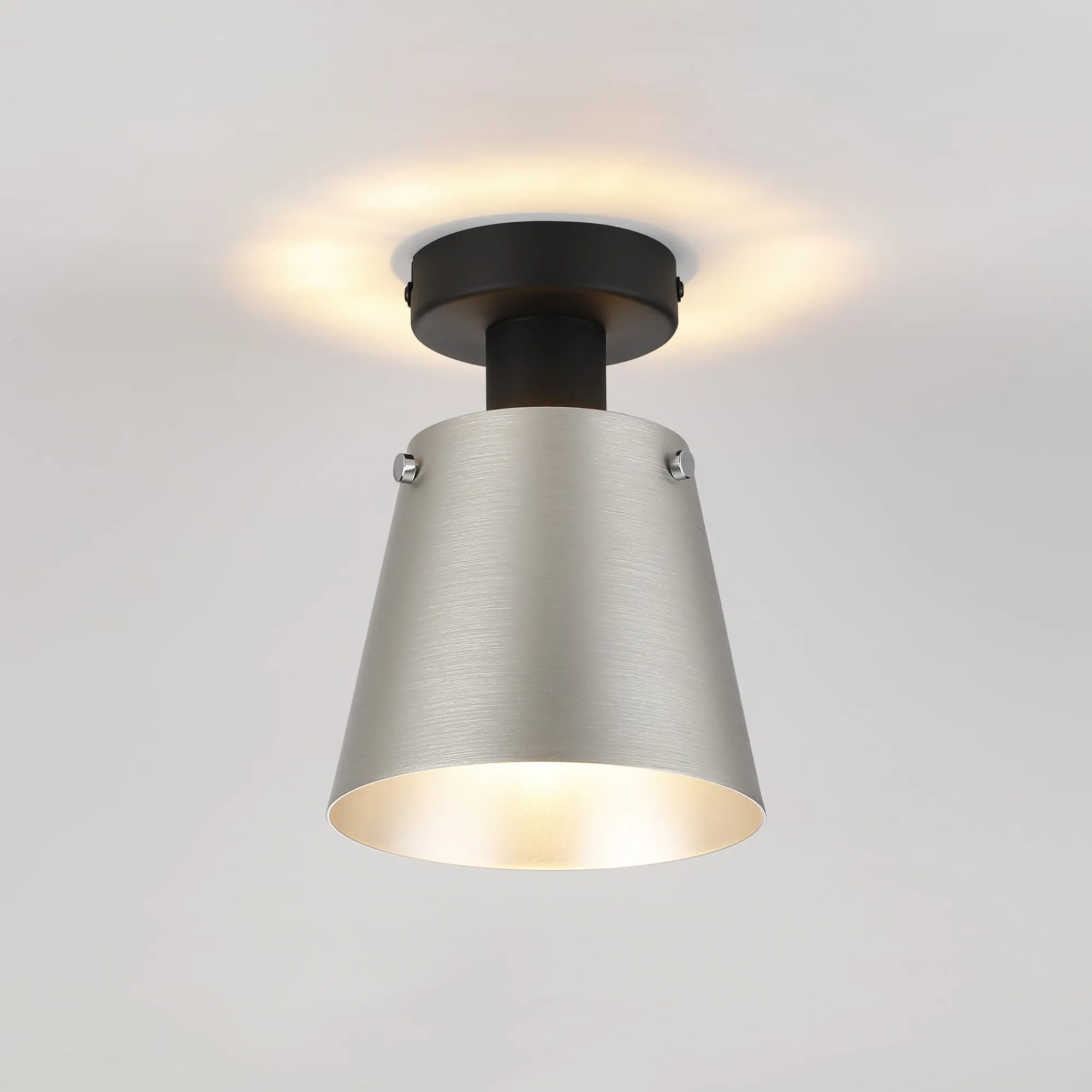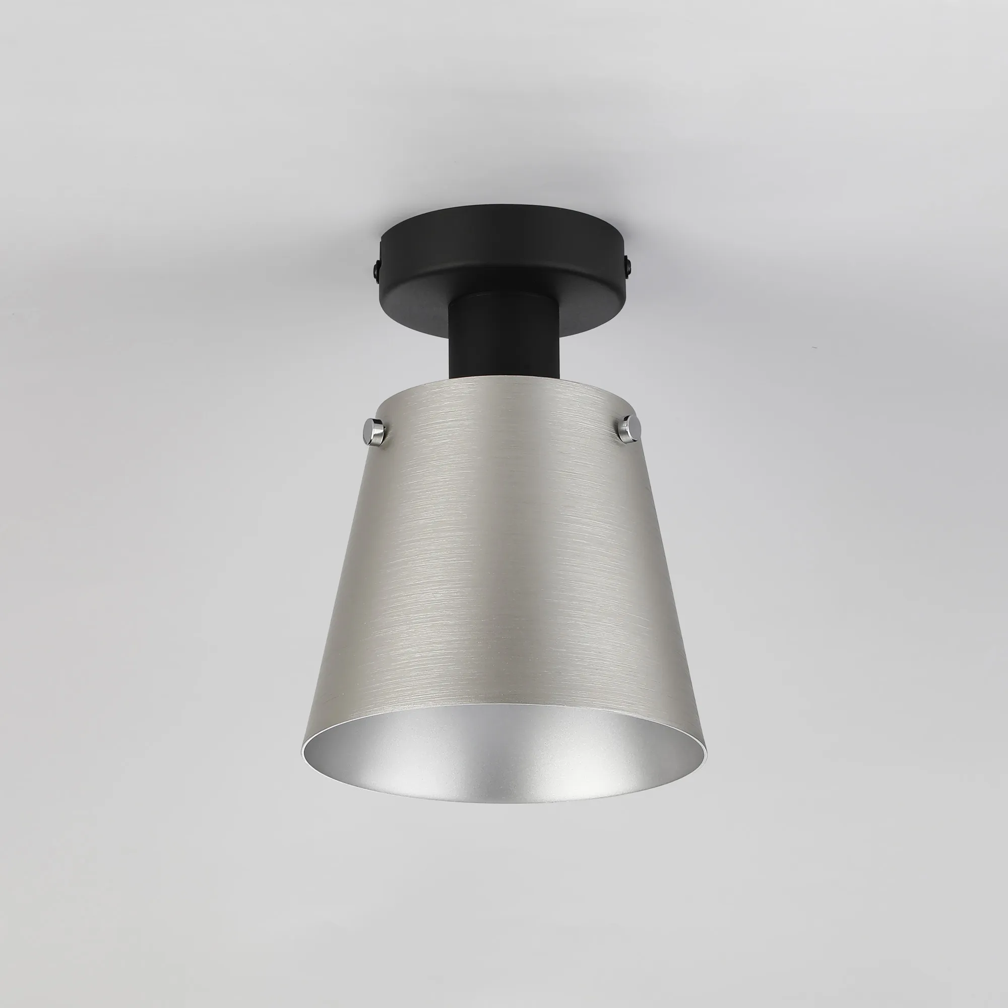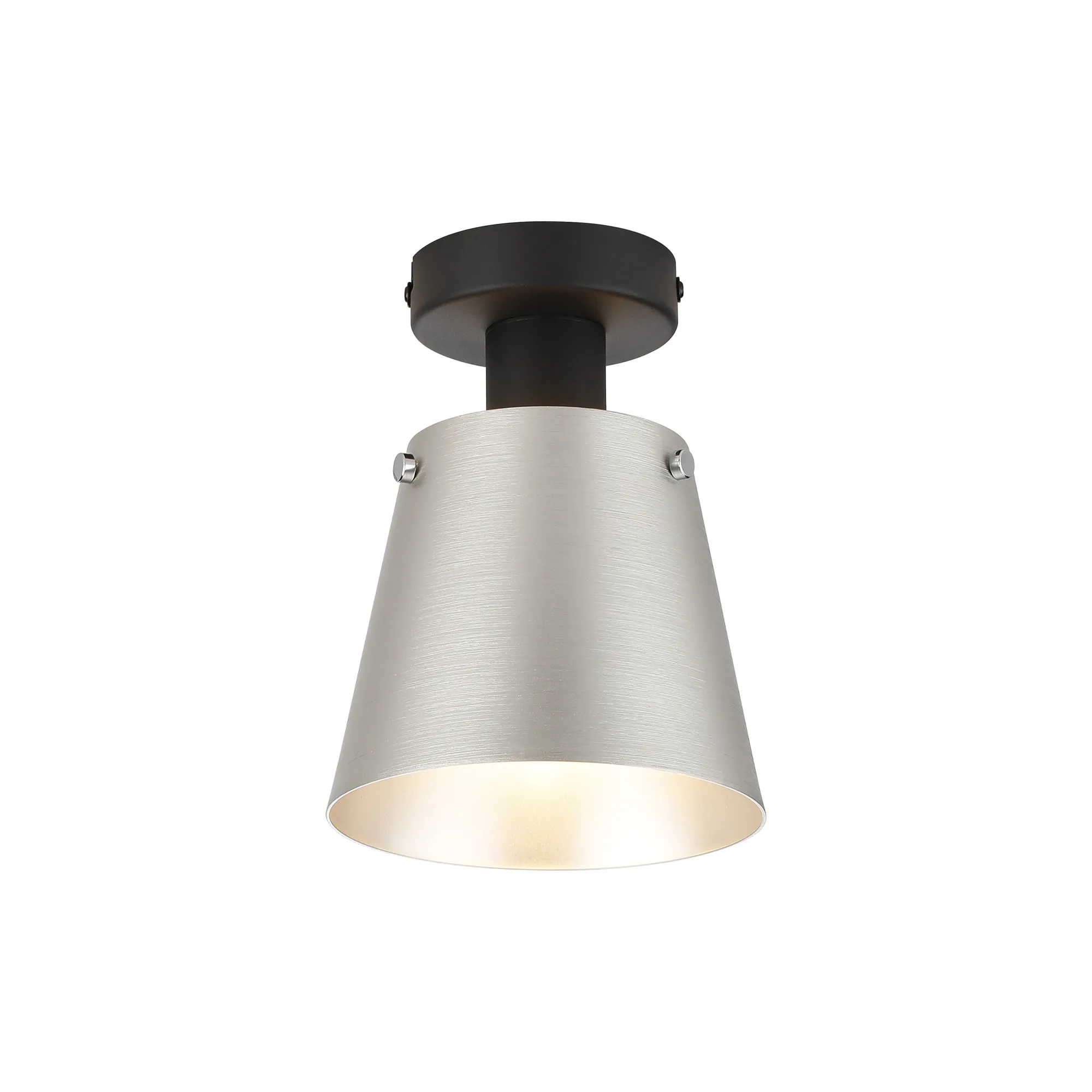 Eton 5008284 Small Semi Flush Ceiling Black & Metal Silver Shade