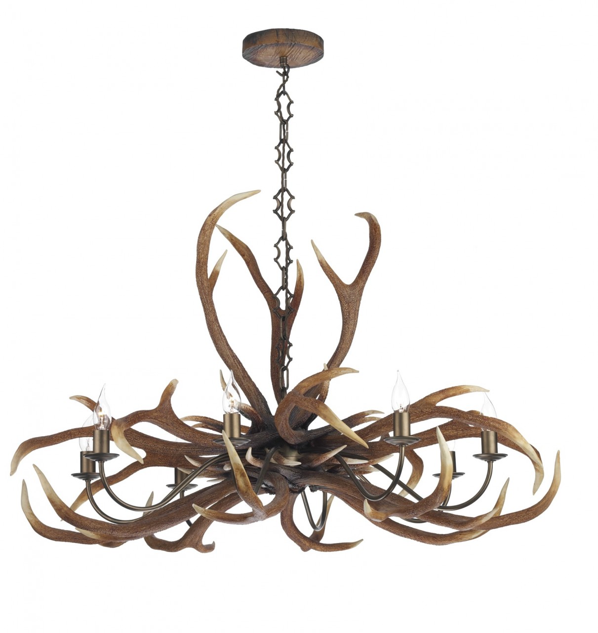 David Hunt Antler Emperor 8 light ceiling fitting brings inside the fascinating, natural beauty of the elegant stag. It features a floating nest of gracefully intertwined cast resin antlers that are hand crafted with artisan-like finesse, for warm and inviting, log cabin appeal. British made and inspired by the outdoors, Feature Rustic Antler style