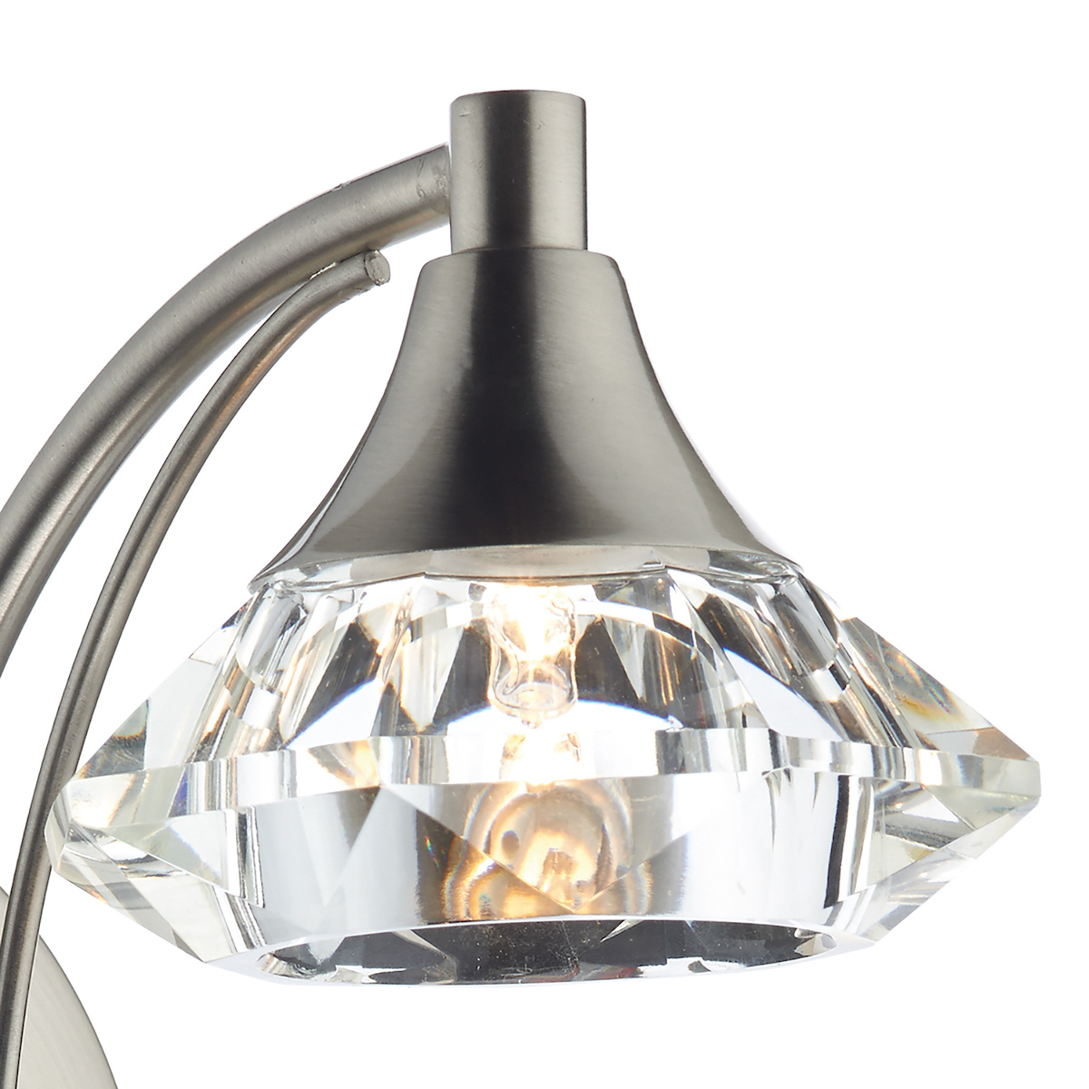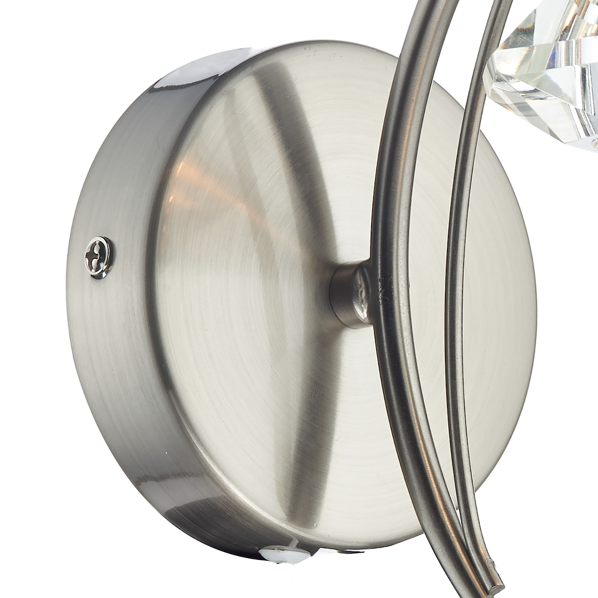 This stylish wall light is finished in satin chrome with crystal glass shade.
