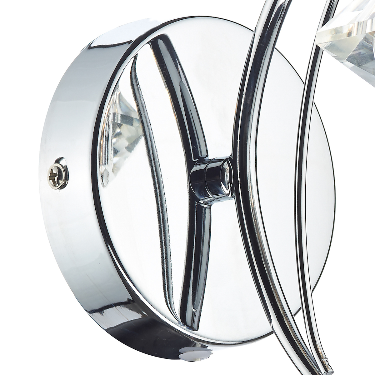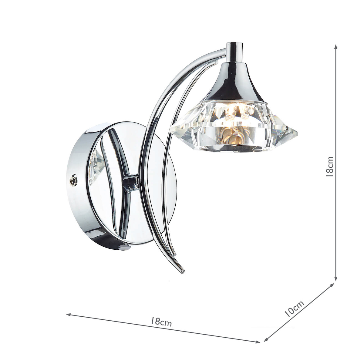 This stylish wall light is finished in Polished Chrome with crystal glass shade.