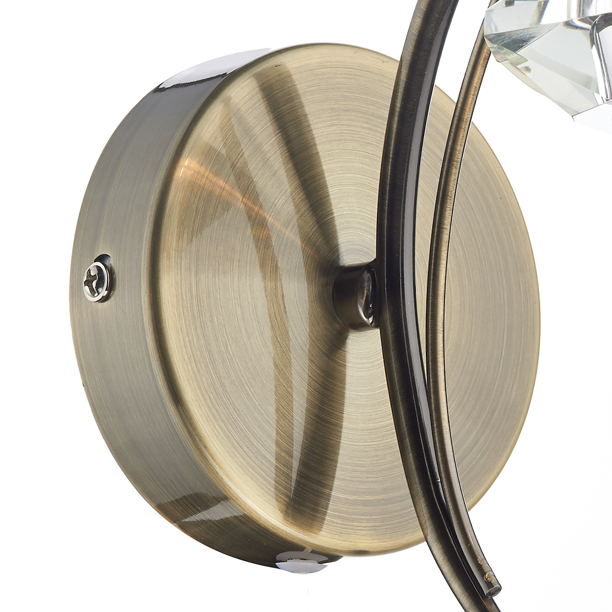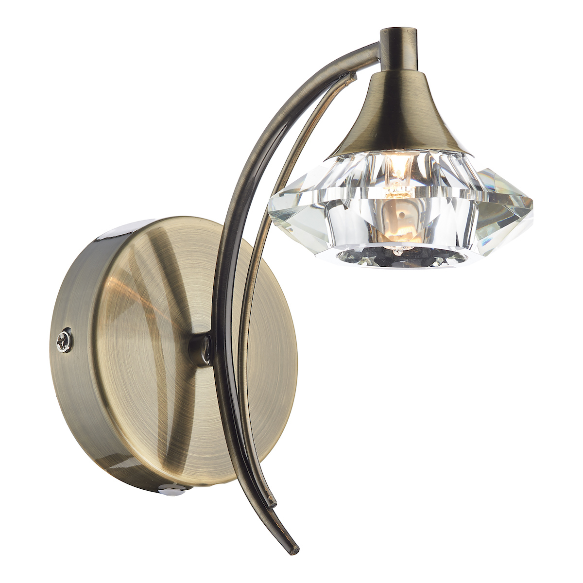 This stylish wall light is finsihed in Antique Brass with crystal glass shade.