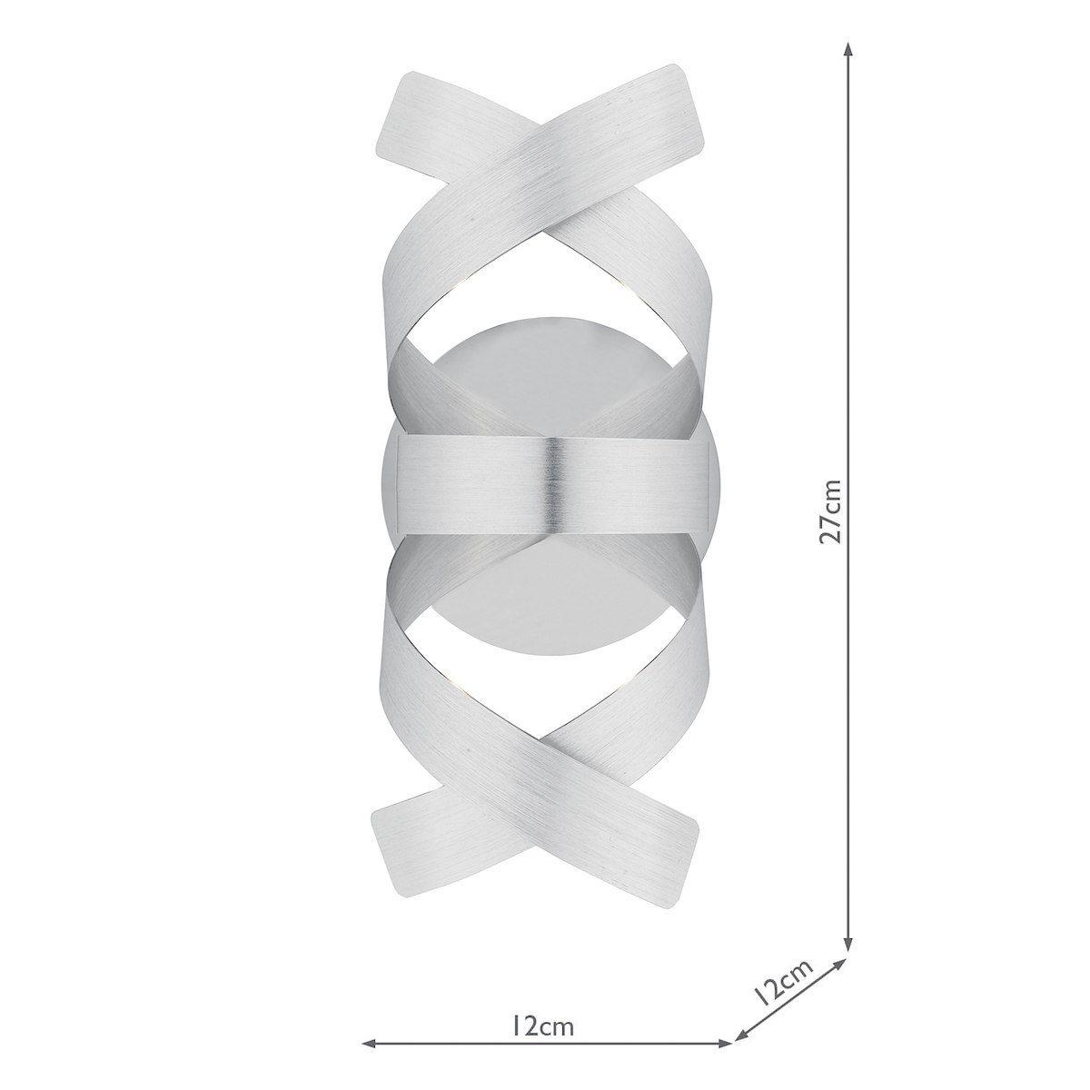 1 light G9 wall bracket features twirling ribbons of brushed aluminium on brushed aluminium plate.