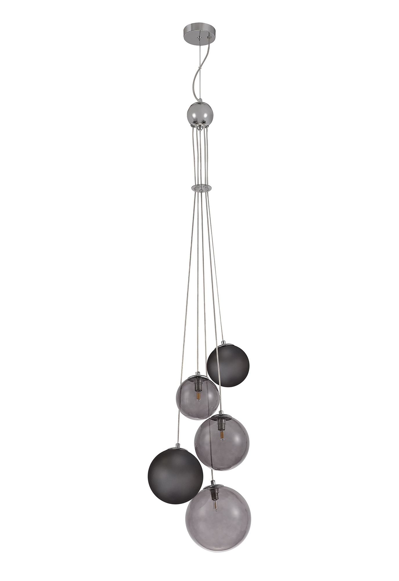 The Moon range has a Polished Chrome base with a collection of different sized glass spheres in Black, smoked and clear.