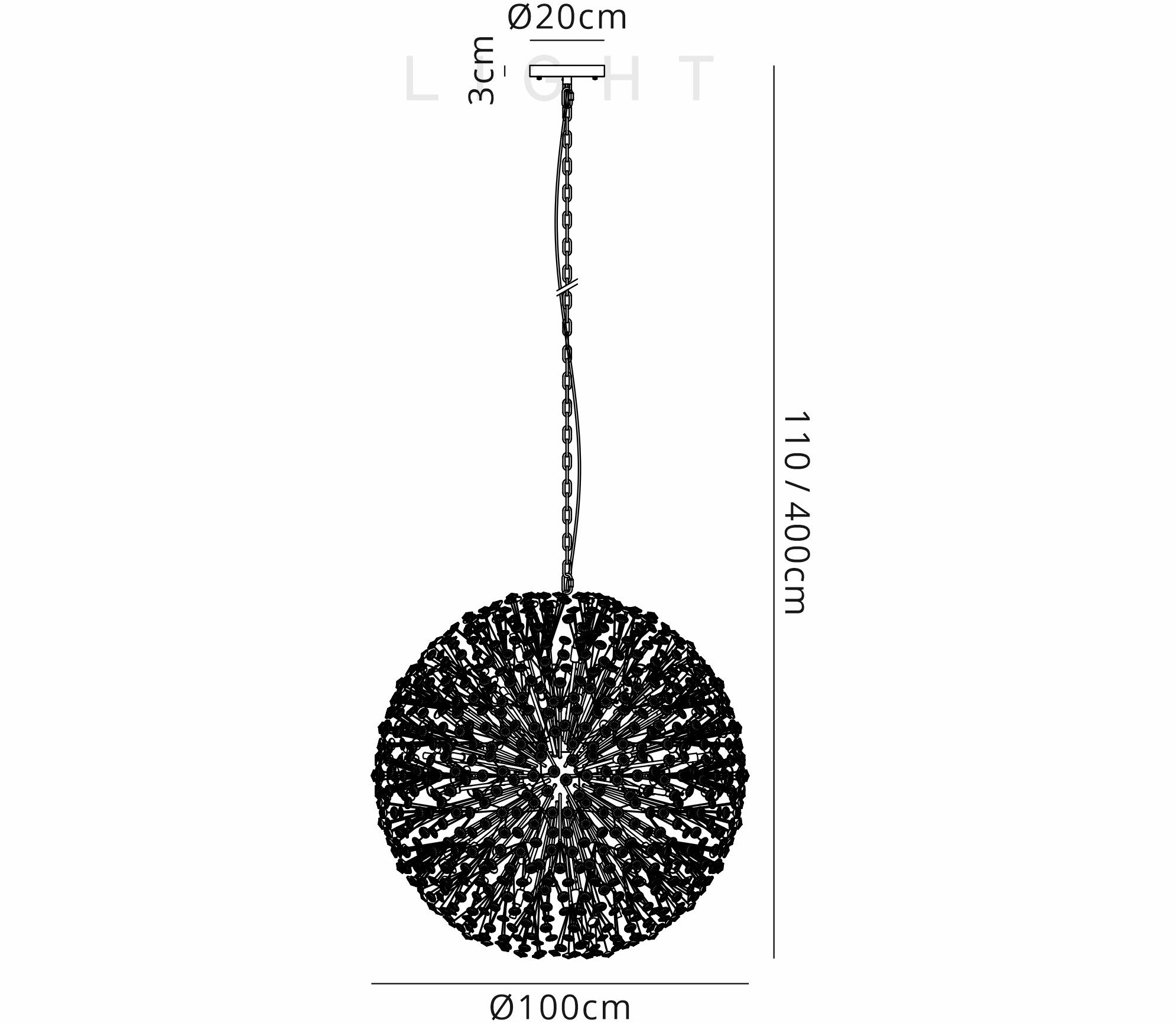 4002922 100cm Belle Crystal Sphere Pendant Chrome