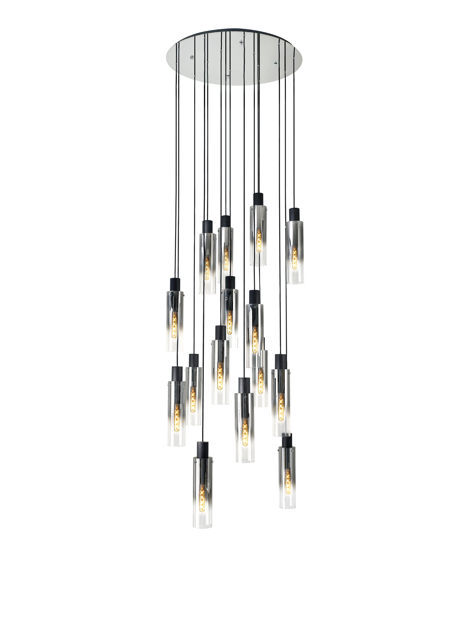 3002061 Drake Slim 15 Light pendant, Black/Smoke Fade Glass