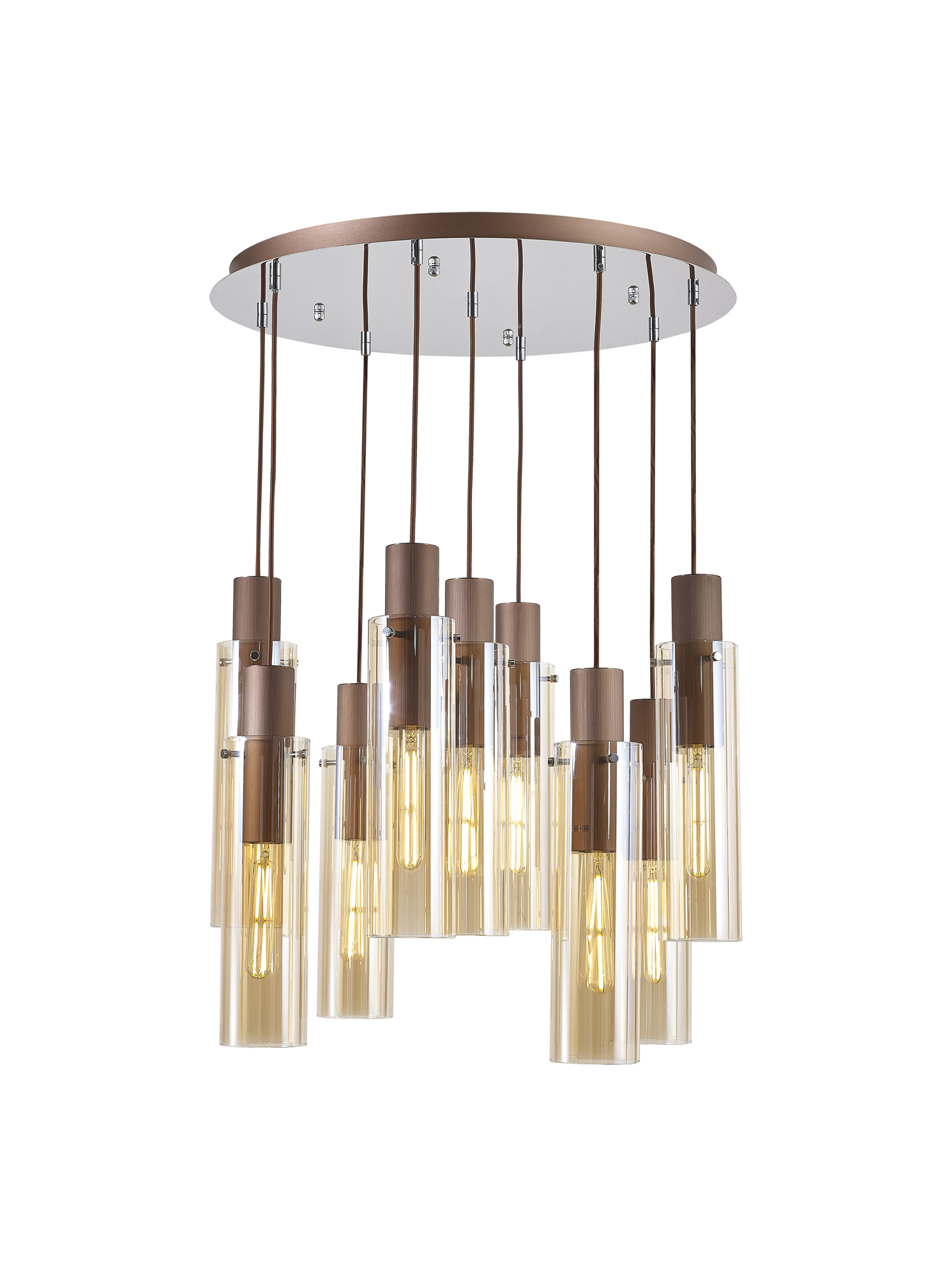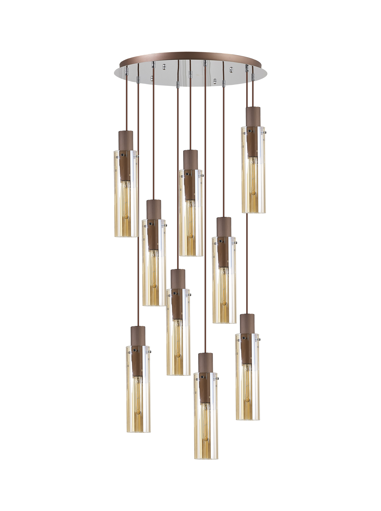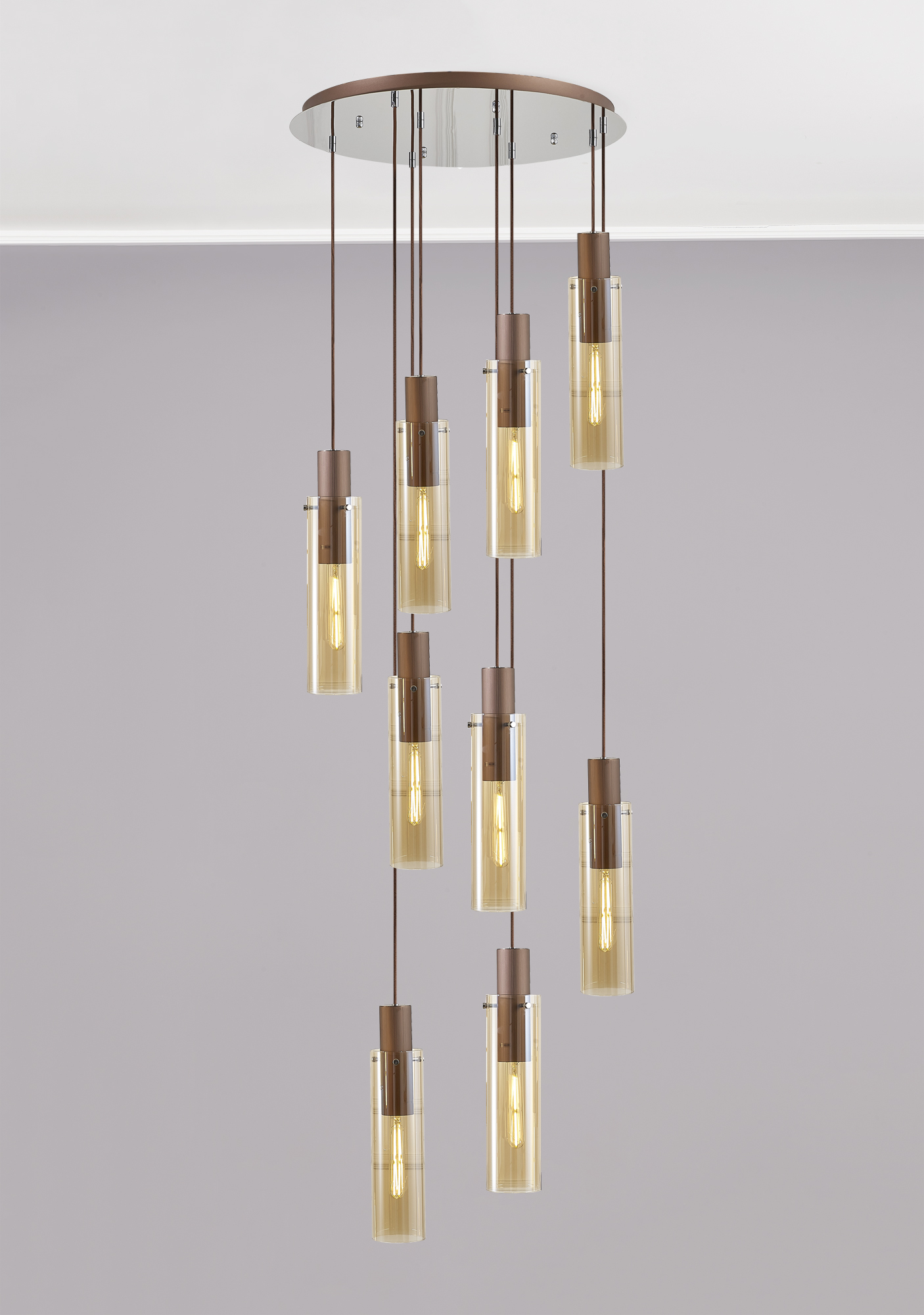 400235 Drake Slim 9 Light Stairwell pendant, Mocha / Amber Glass