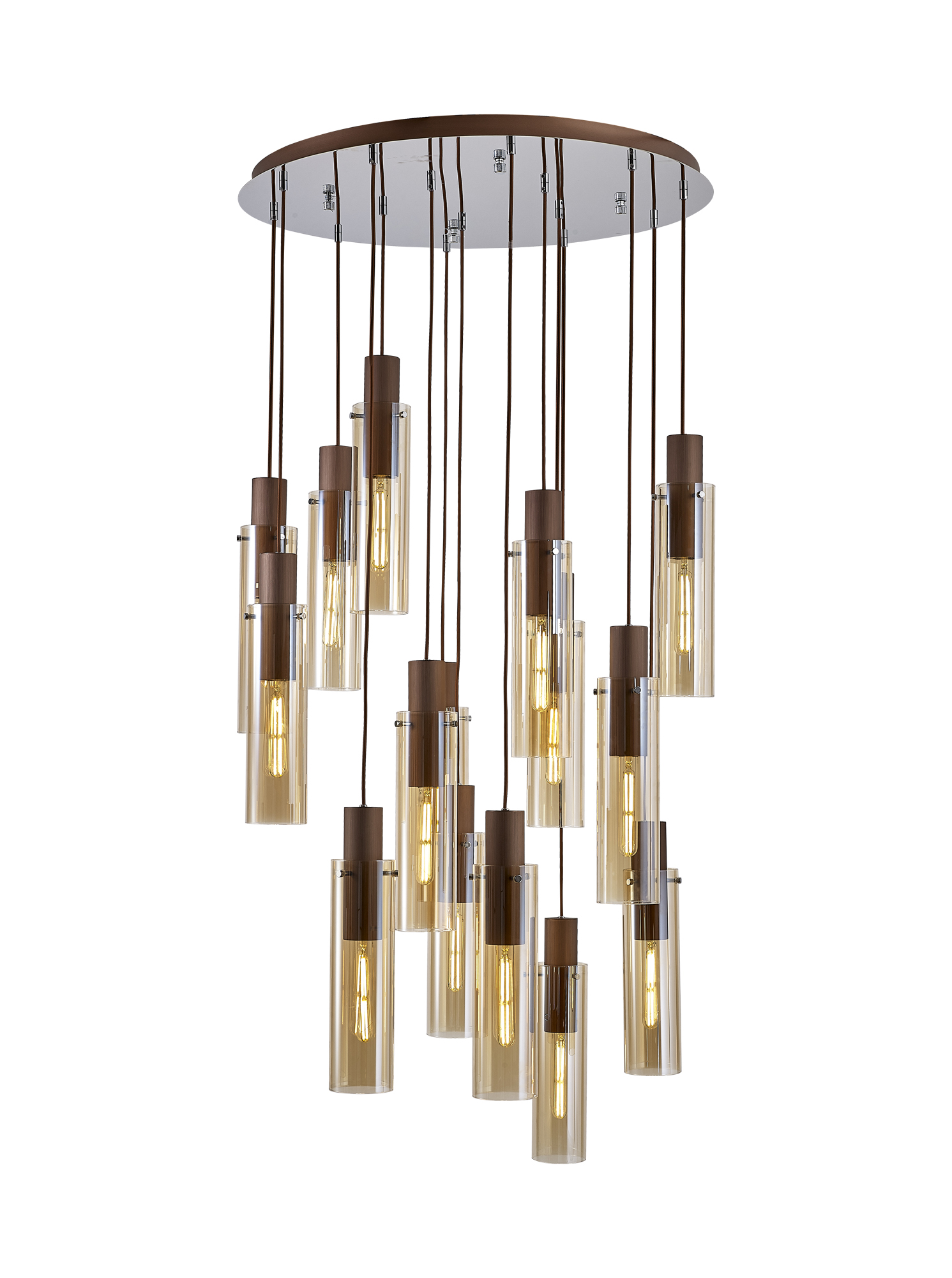 400236 Drake Slim 15 Light pendant, Mocha / Amber Glass