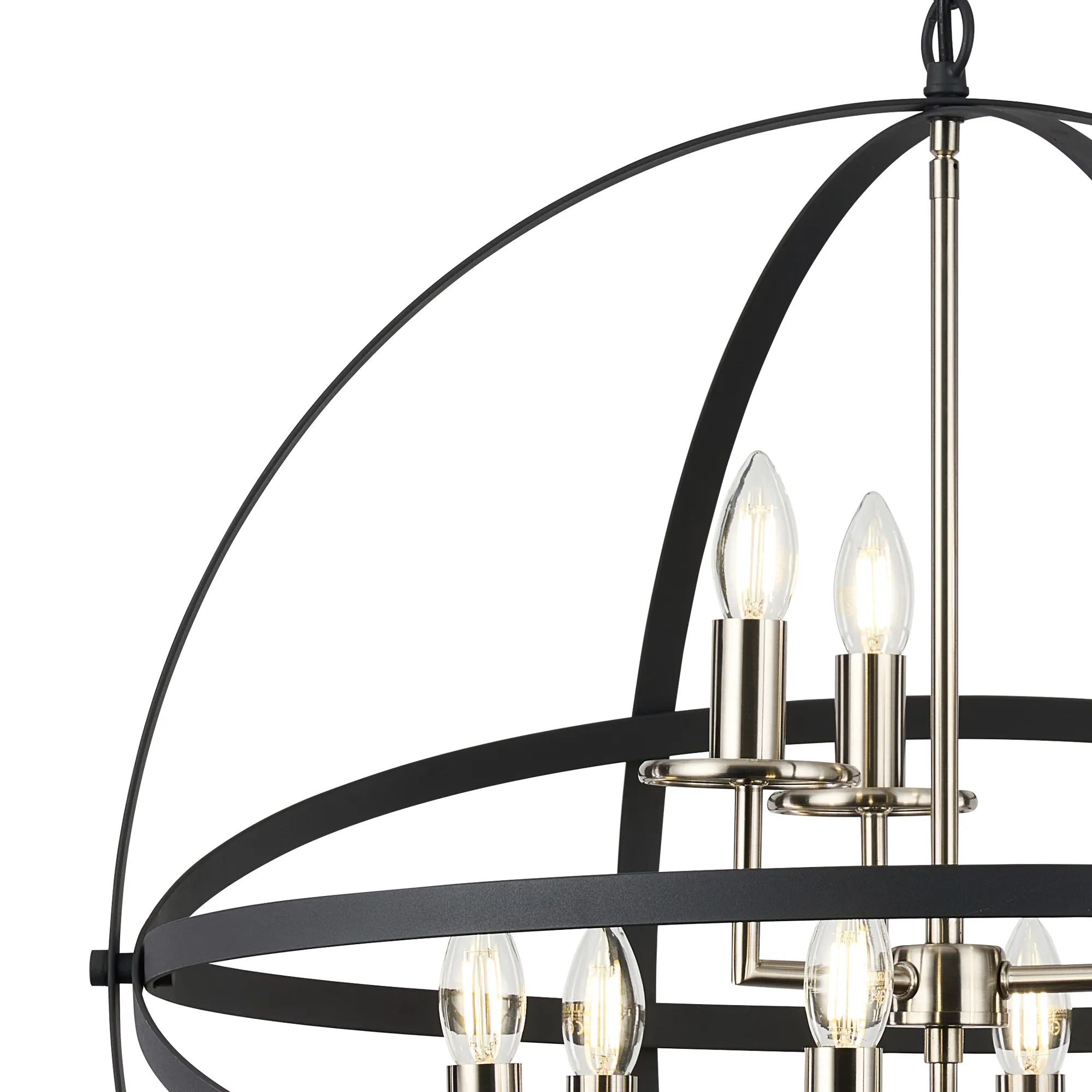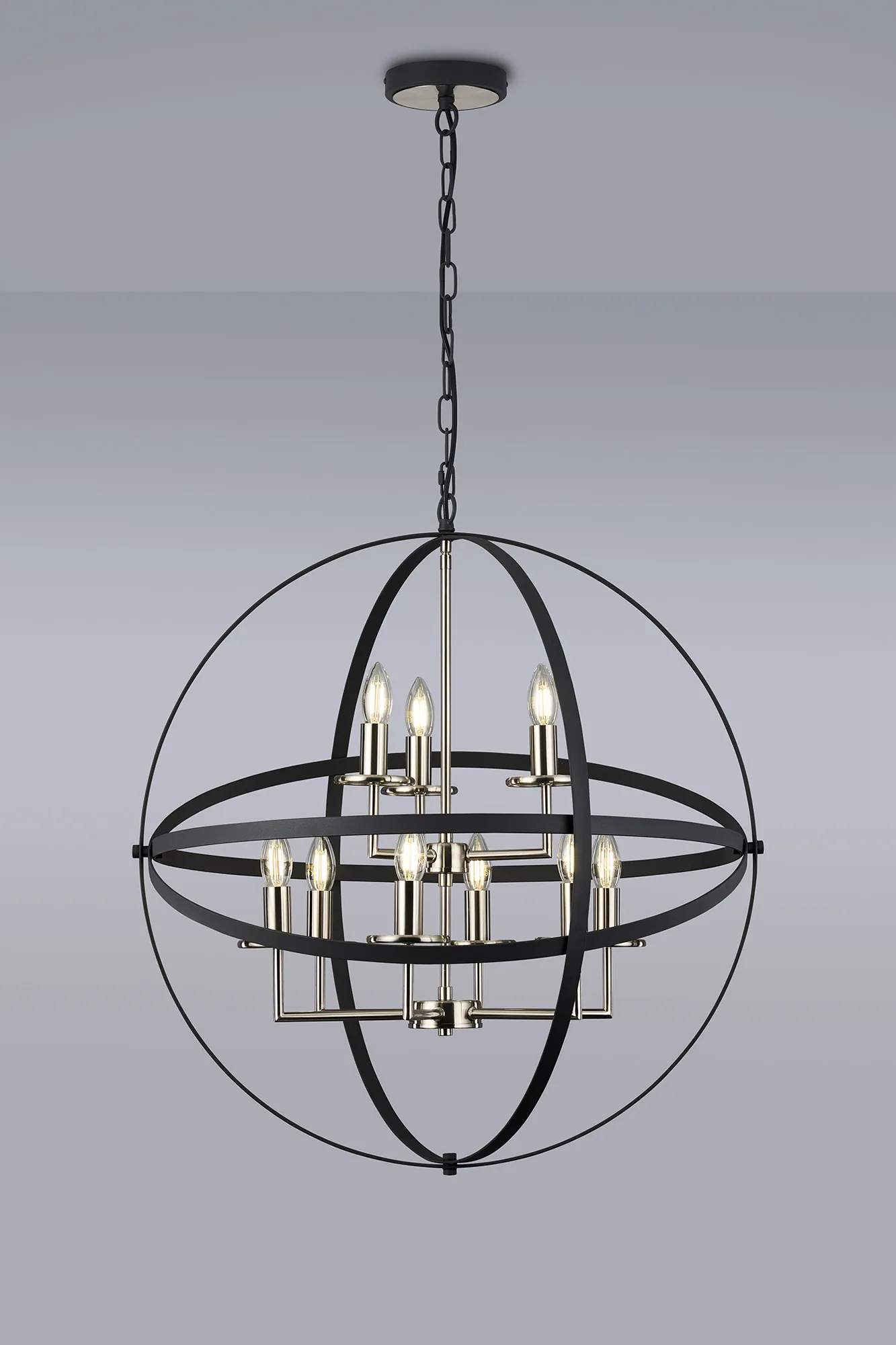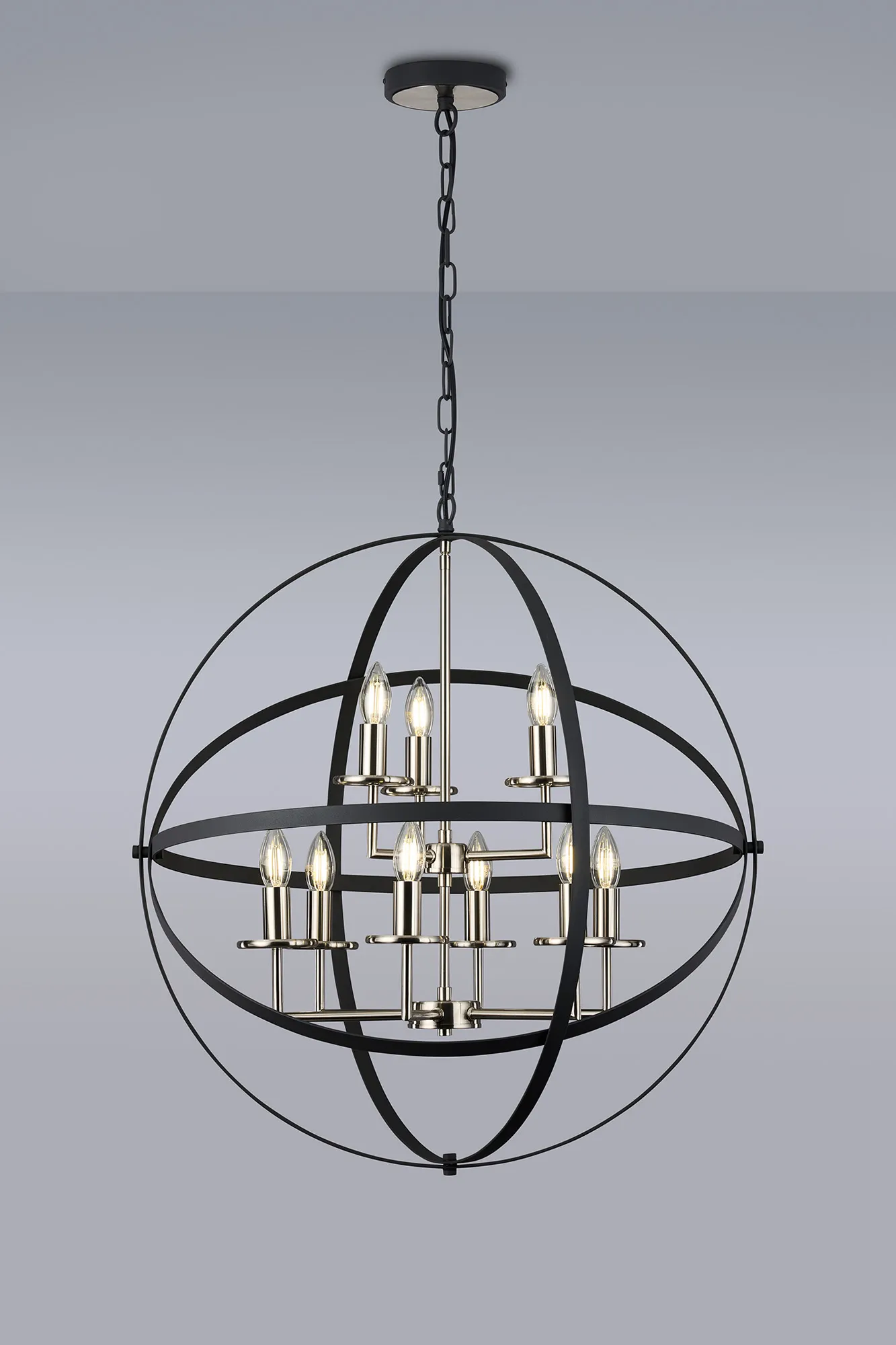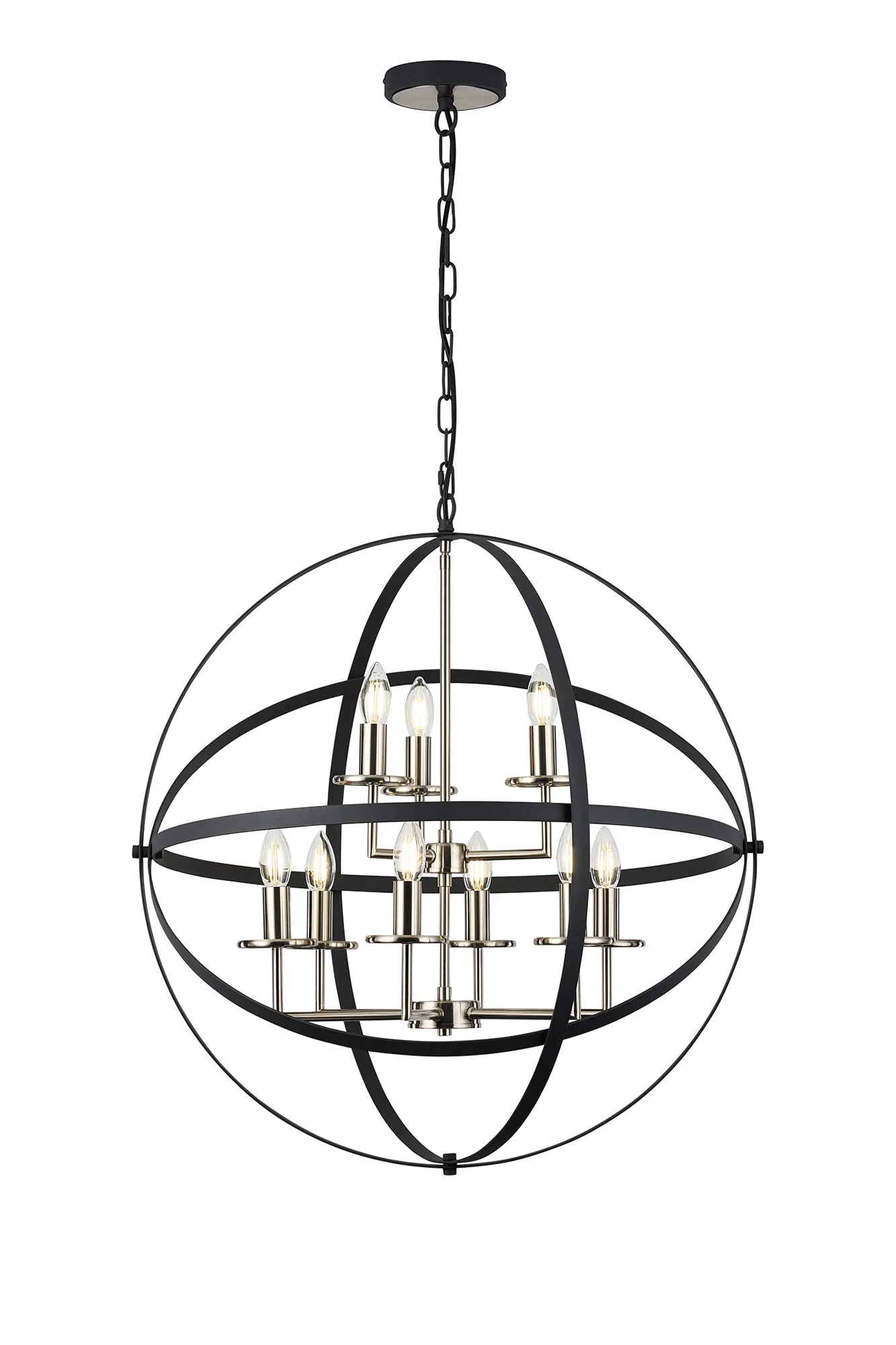 Modern style orb pendant finish in Anthracite rings with 9 light Anthracite/Satin Nickel, The combination of metallic framework combined with a darker decorative embellishment has proved excessively popular with some of our other ranges. In order to offer more style options within this concept we have now designed the Saturn range.