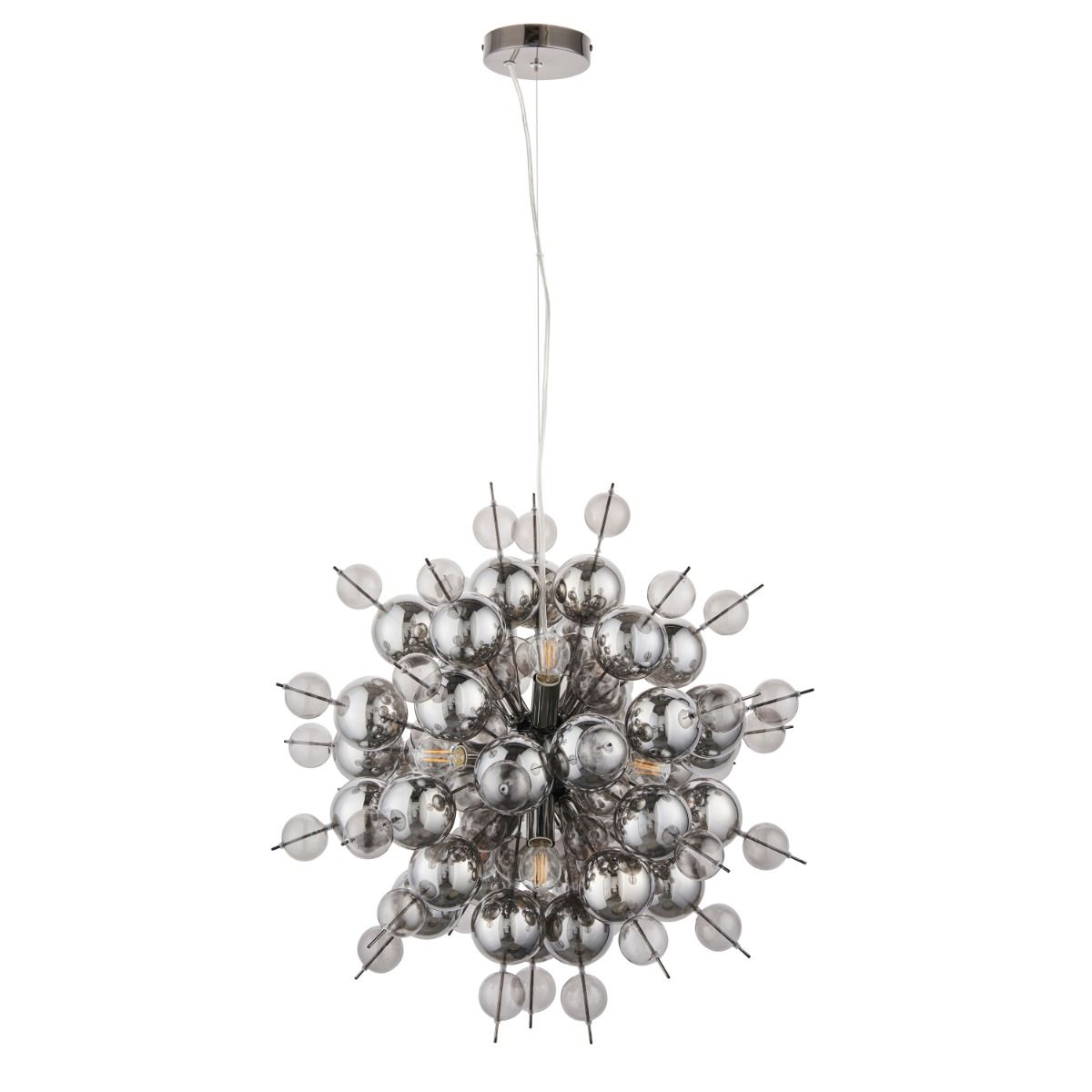 Bubbles Black chrome pendant with tinted glass spheres