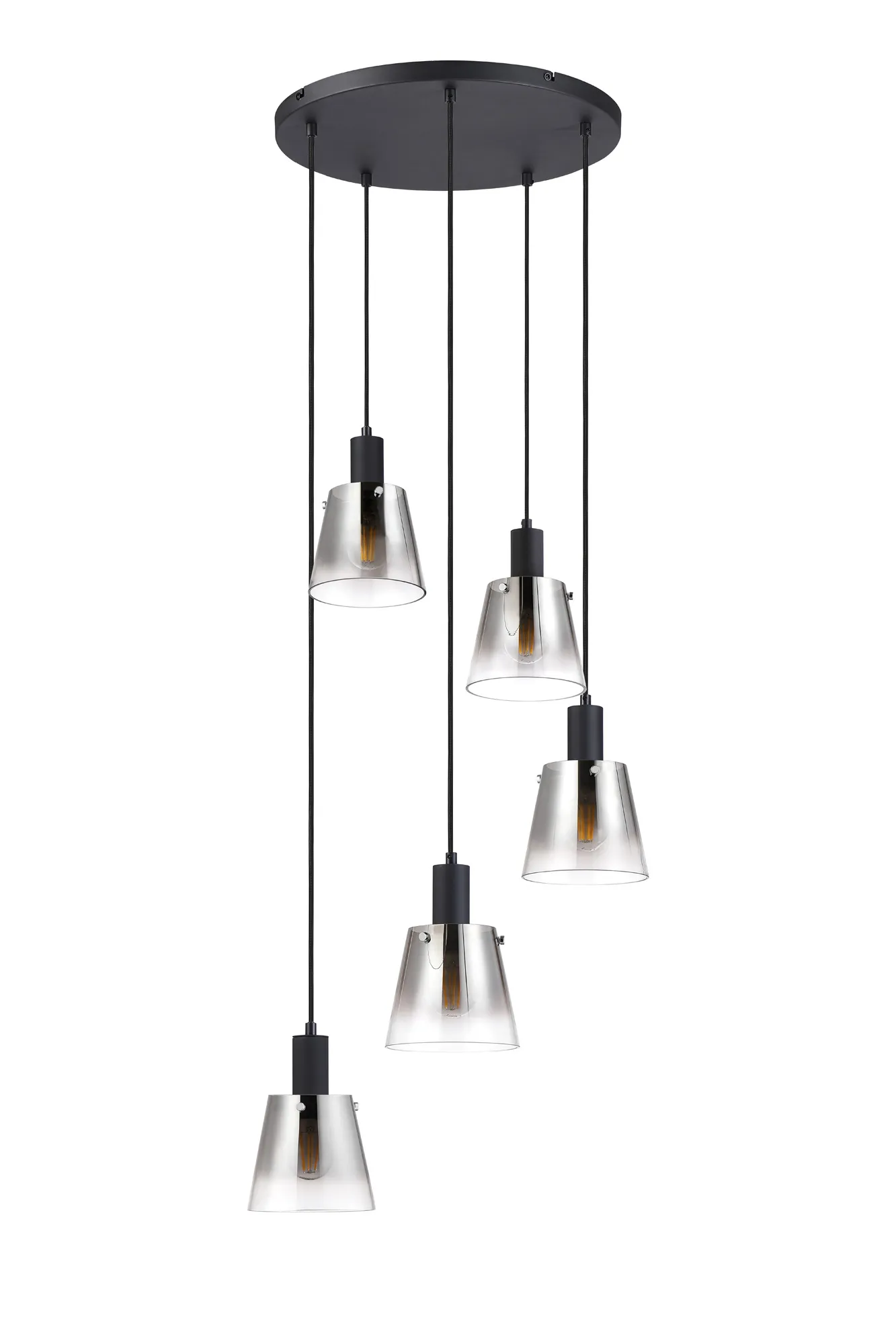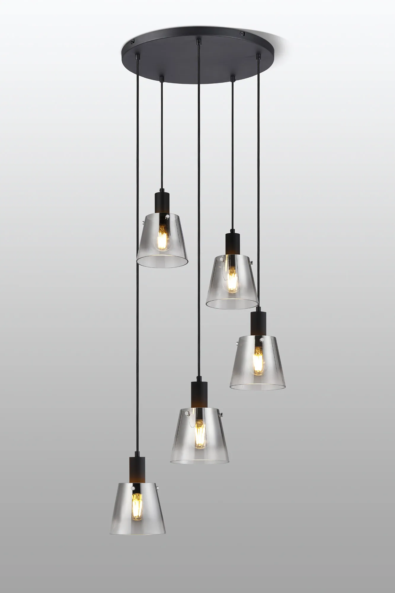 Eton 5008351 5 Light Spiral Pendant Black & Smoked Glass