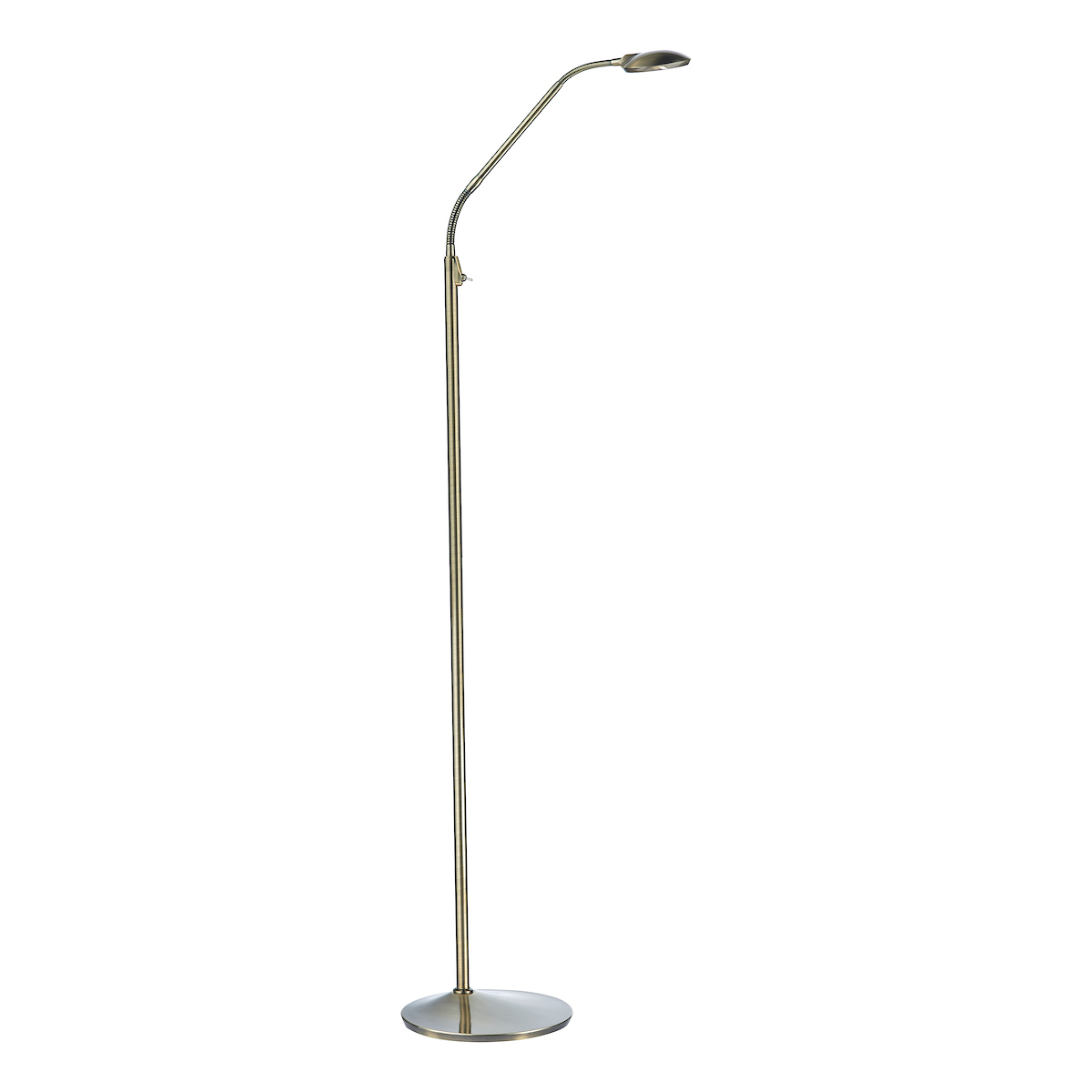 The LEWIS is Perfect for reading and crafts, the dedicated LED Floor Lamp has a antique brass finish, a flexible head and is toggle switched.