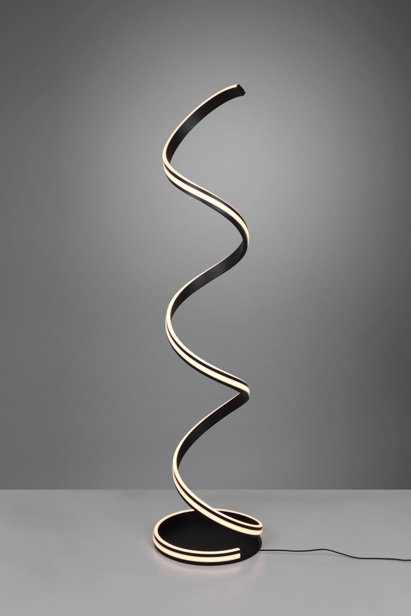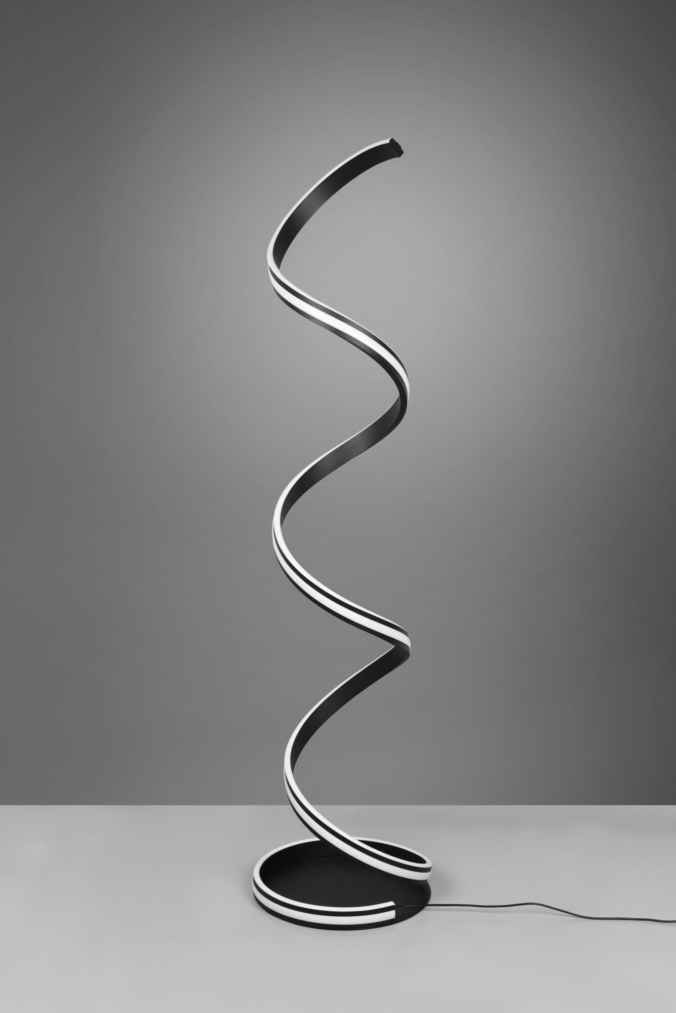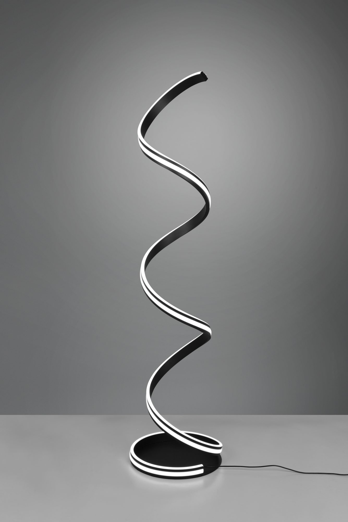 Curved shapes form the basis of the RIA luminaire. The harmonious design and wide profile make the floor lamp a special lighting object with practical additional functions. The luminaire can be set to three light colours (warm, neutral, daylight white) and the brightness can be continuously adjusted using a foot switch. Thanks to the matt black colour design,