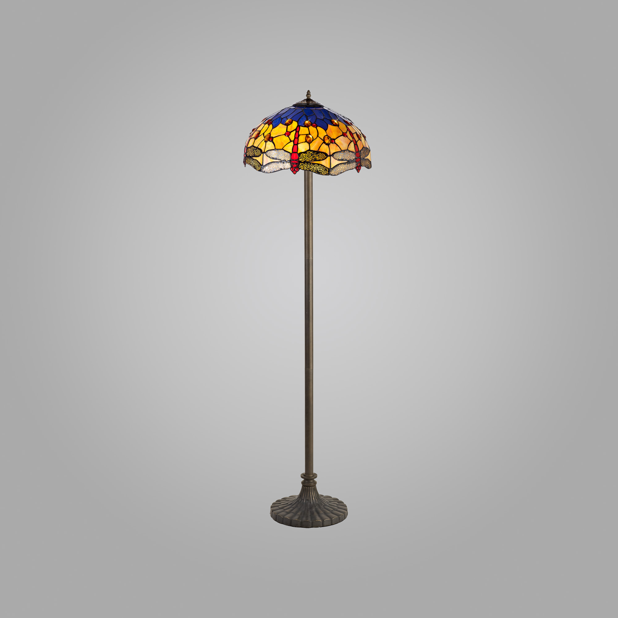 00583 Tiffany Dragonfly Floor Lamp Blue/Orange/Crystal/Aged Antique Brass
