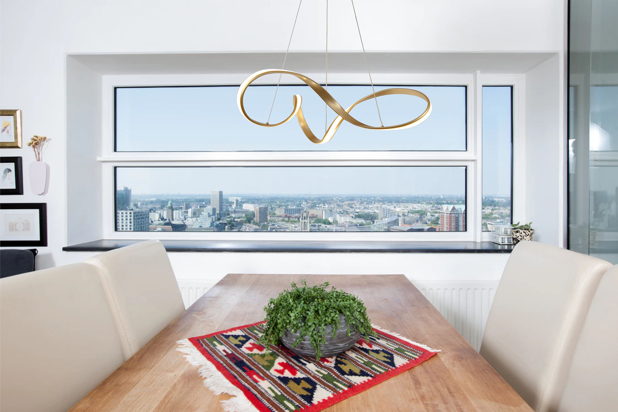 The rhythmic twists and curls of the Bronson form deliver a seamless flow of light. Despite the spiralled directionality of the integral LEDs the pendants as a whole emit an ambient glow of 3000K illumination. In order to offer a wider variety of LED options,