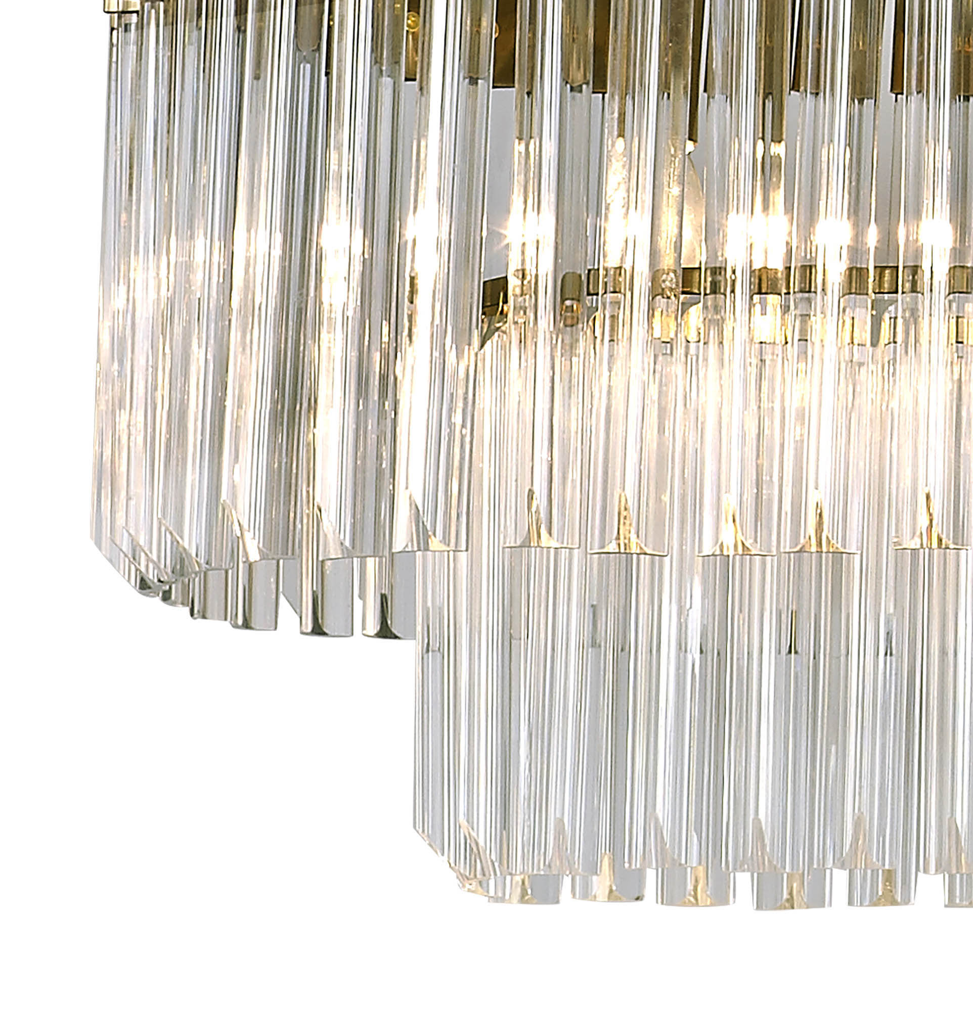 The shard collections initial release has been so overwhelming that the collection has now been extensively expanded to meet a wider range of specification needs. This contemporary design which originally combined a traditional brass finish with clear crystal glass pieces,