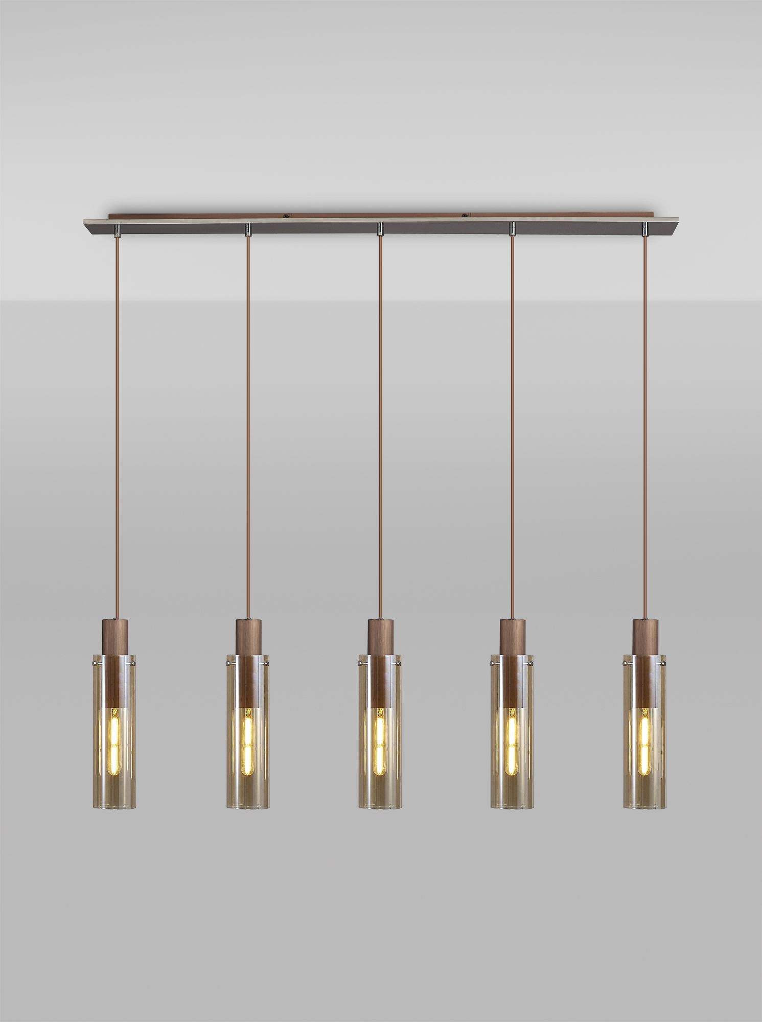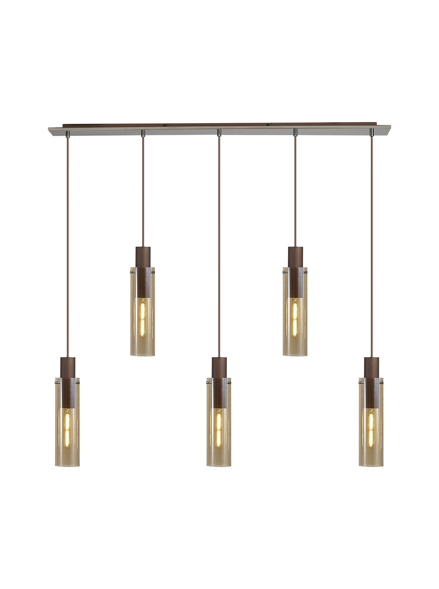 4002310 Drake Linear 5 Light Pendant Mocha / Amber Glass