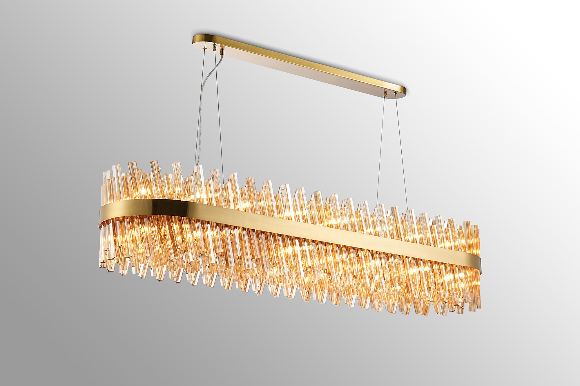 4002661 Cali 36 Light Oblong Pendant Brass/Amber Glass