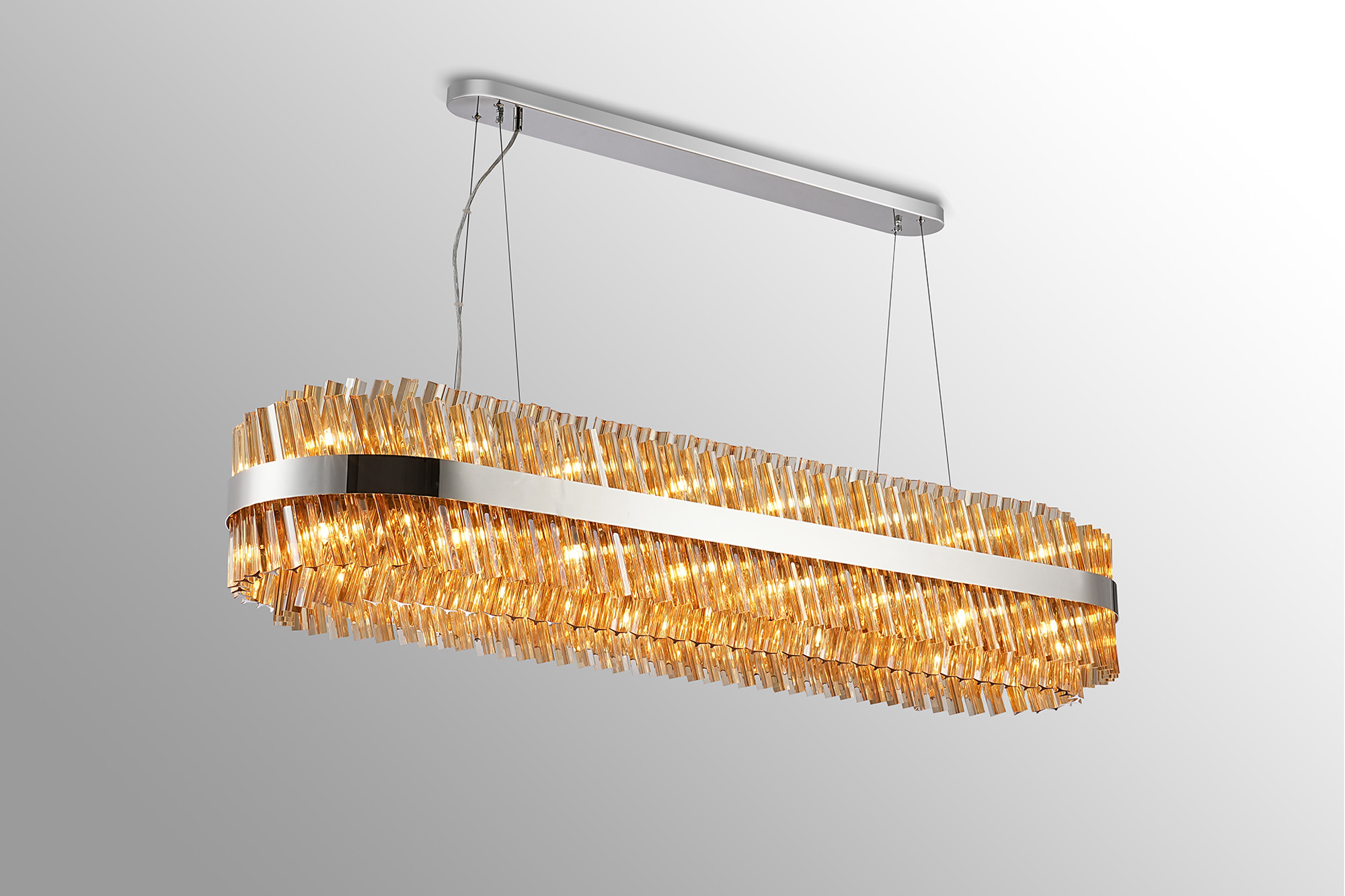 4002671 Cali 36 Light Oblong Pendant Polished Nickel/Amber Glass