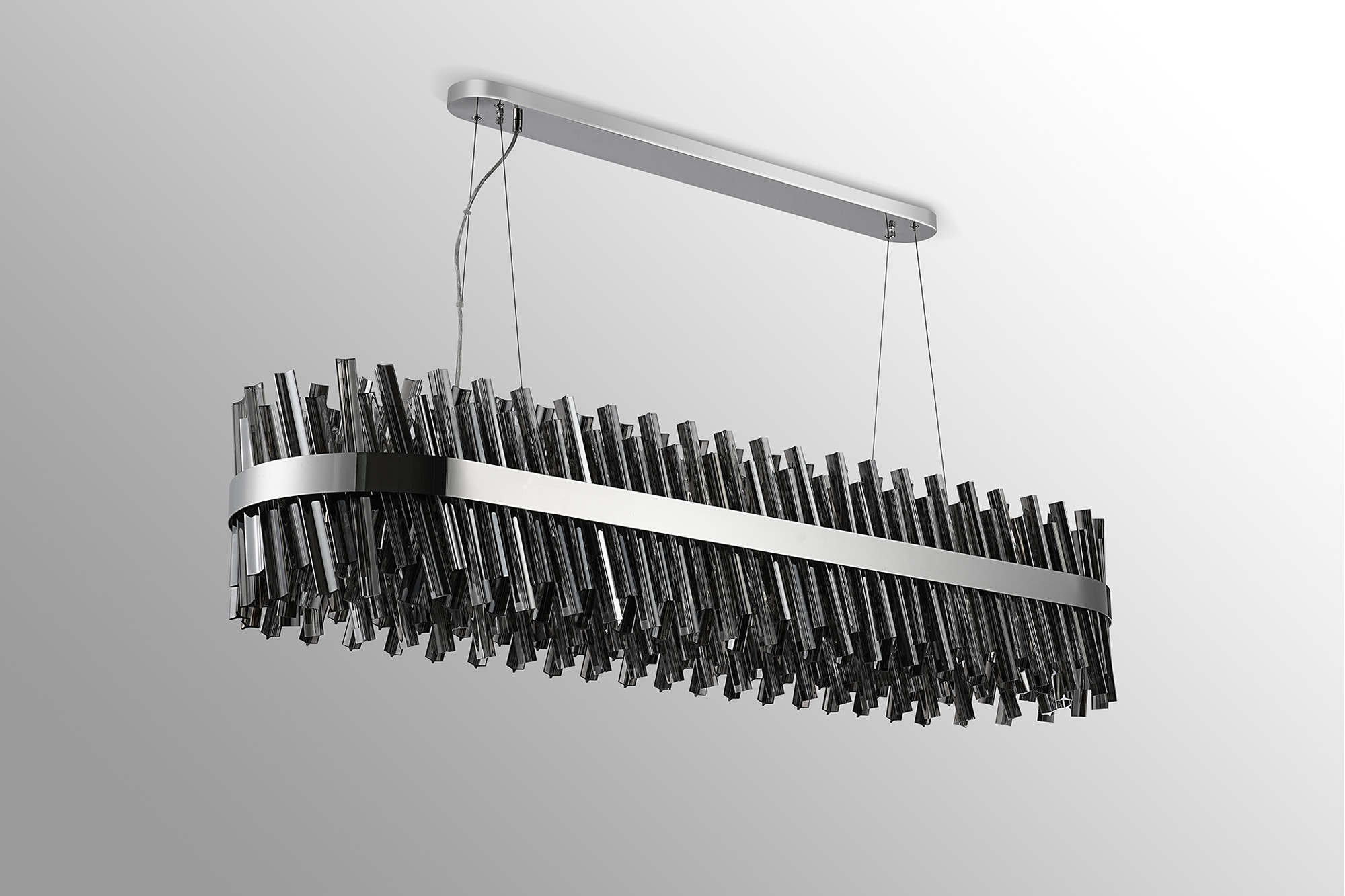4002673 Cali 36 Light Oblong Pendant Polished Nickel/Smoked Glass 150 cm