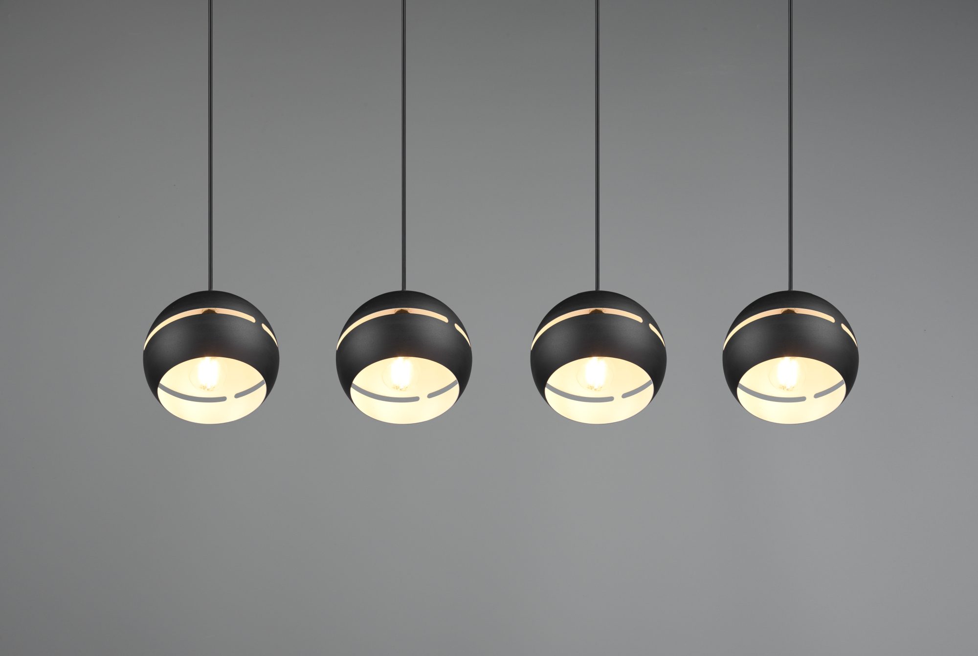Modern 4 bar pendant light, finished in black, The four-flame pendant luminaire mounted centrally above the dining table provides optimal lighting conditions and becomes an eye-catcher. The tasteful exterior in matte black provides a timeless and modern look. For energy-saving lighting.