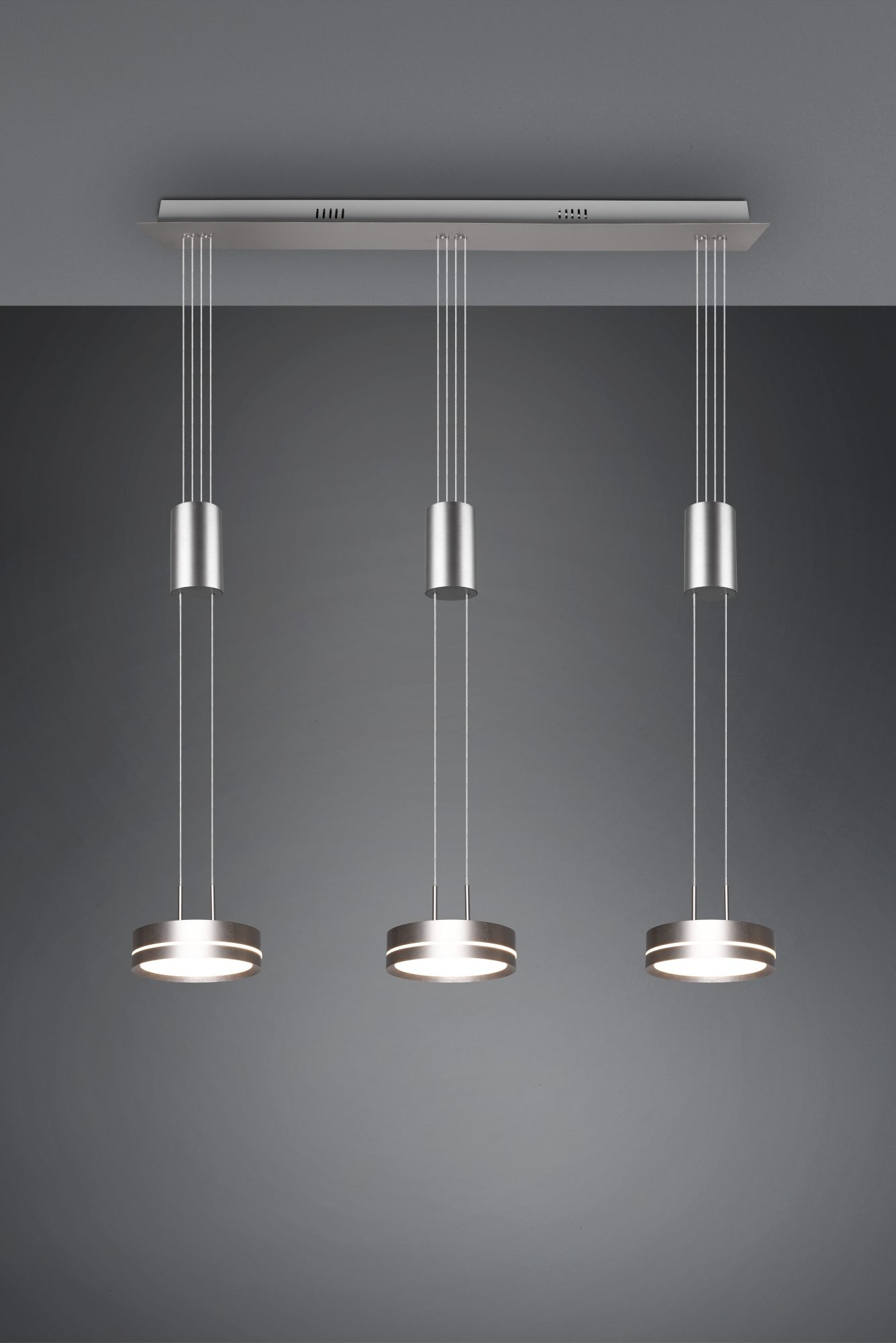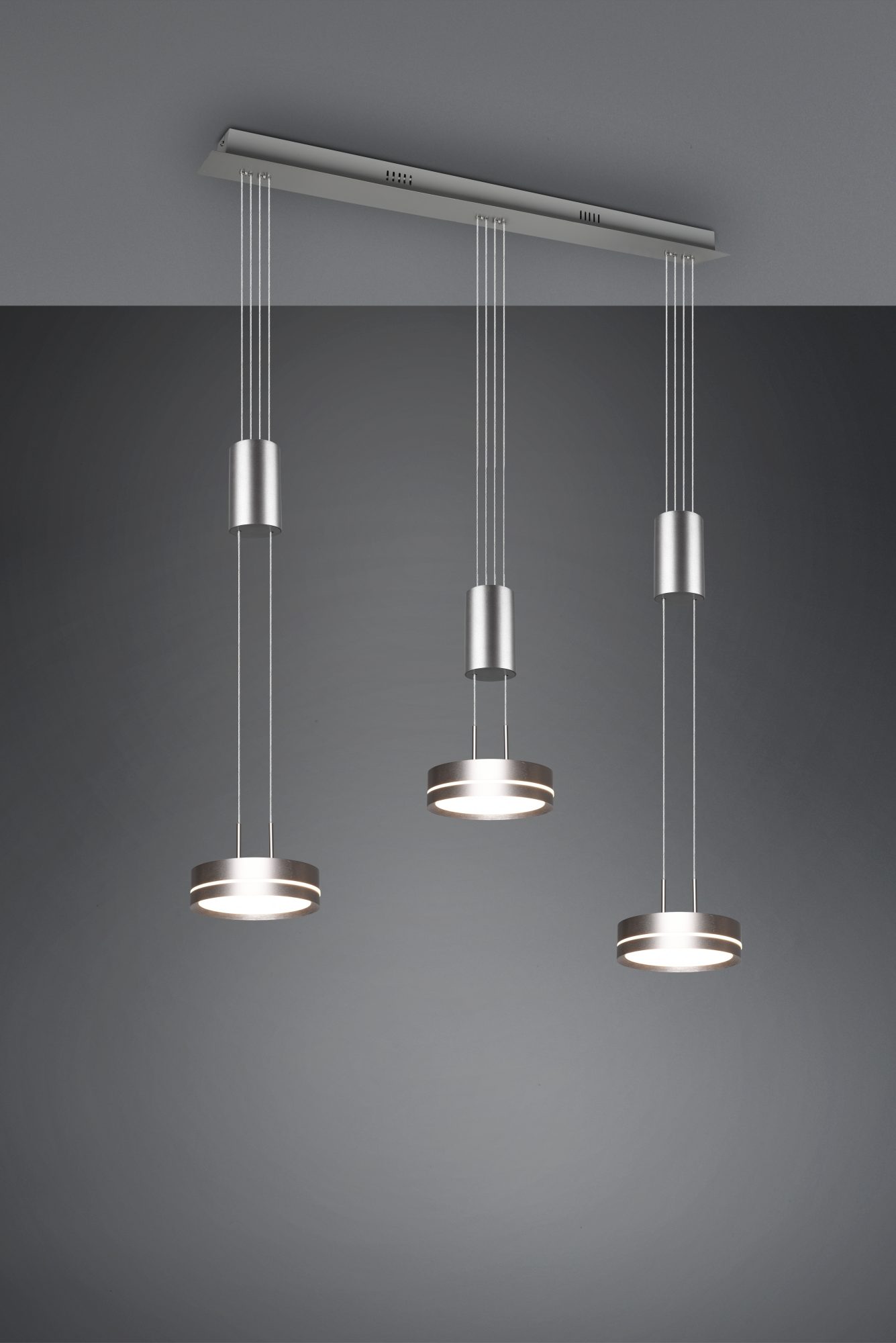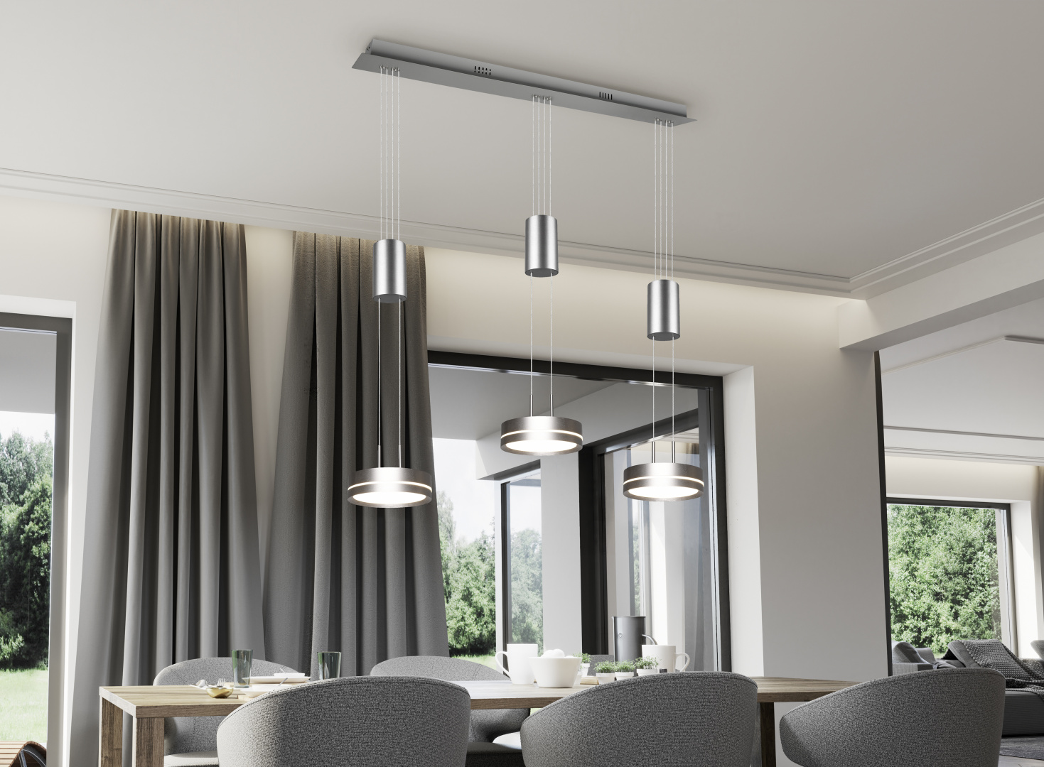Practical, functional and stylish! The Drum luminaire impresses with its modern, futuristic look. In addition, the individual light sources can be easily adjusted in height, making the lamp ideal for the living area. Hung over an elongated dining table or kitchen counter, the pendant light comes into its own.
