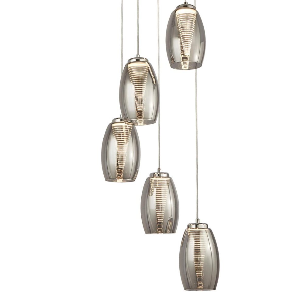 91972915SM Storm 5 Light Pendant Chrome/Smoked Glass