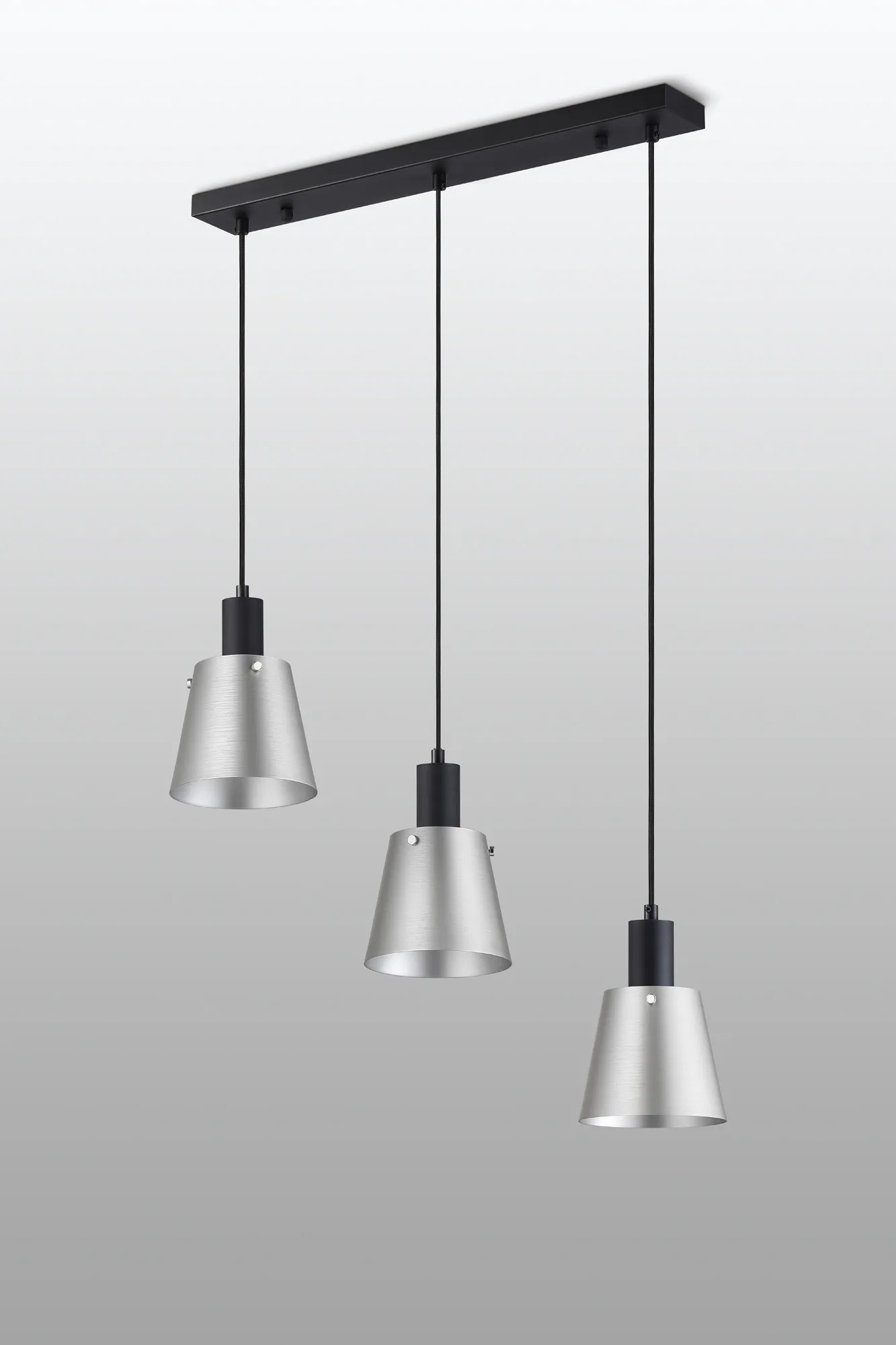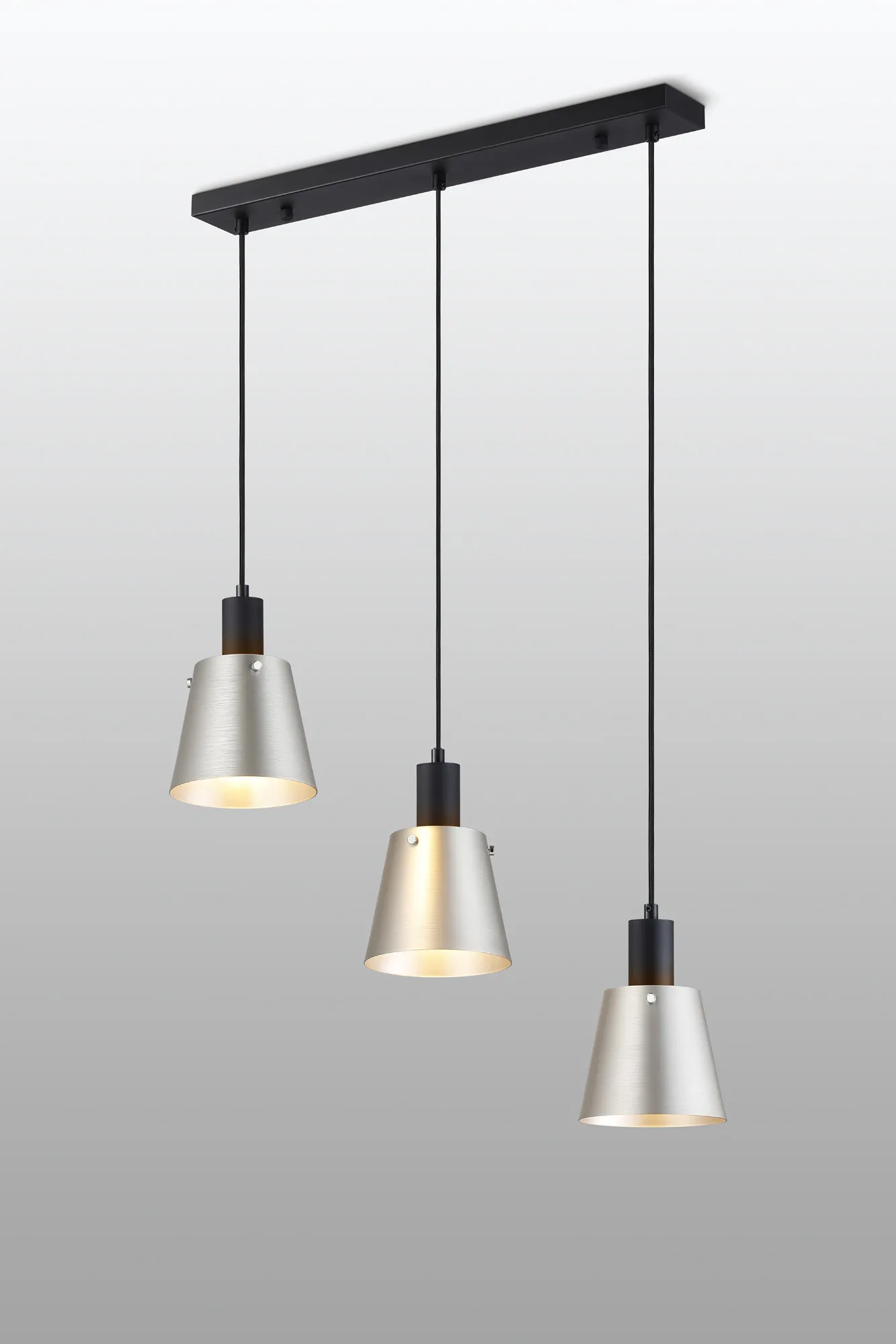 Eton 5008282 3 Light Bar Pendant Matt Black & Silver Shade