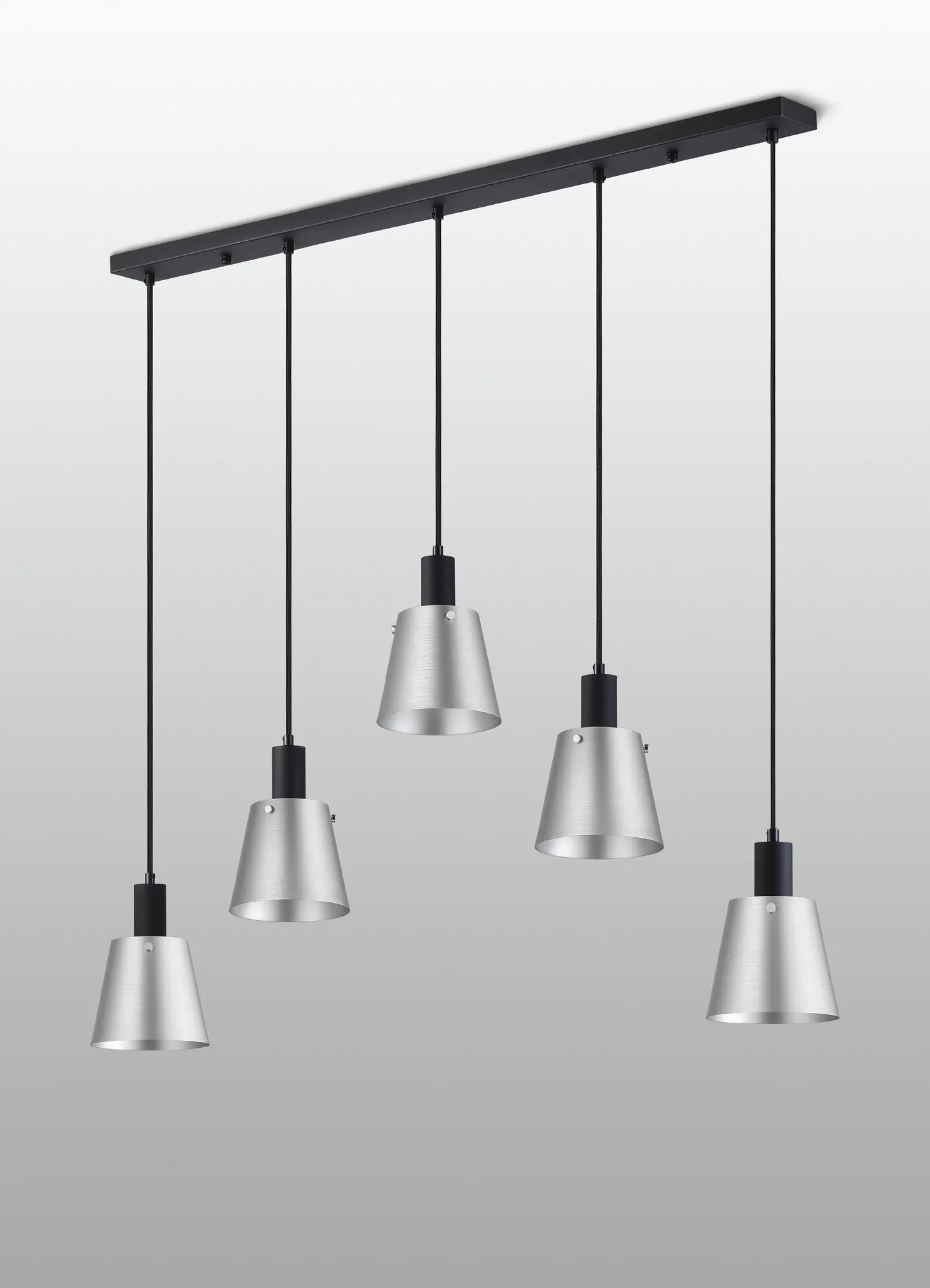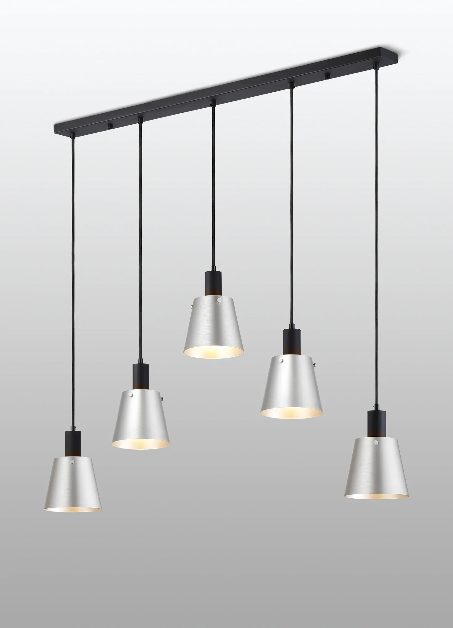 Eton 5008283 5 Light Bar Pendant Matt Black & Silver Metal Shade