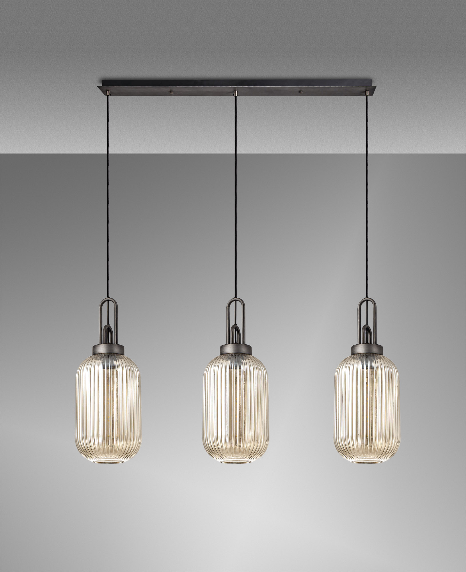 00KIT782 Reeta 3 Light Aged Pewter/Champagne Tubular Glass