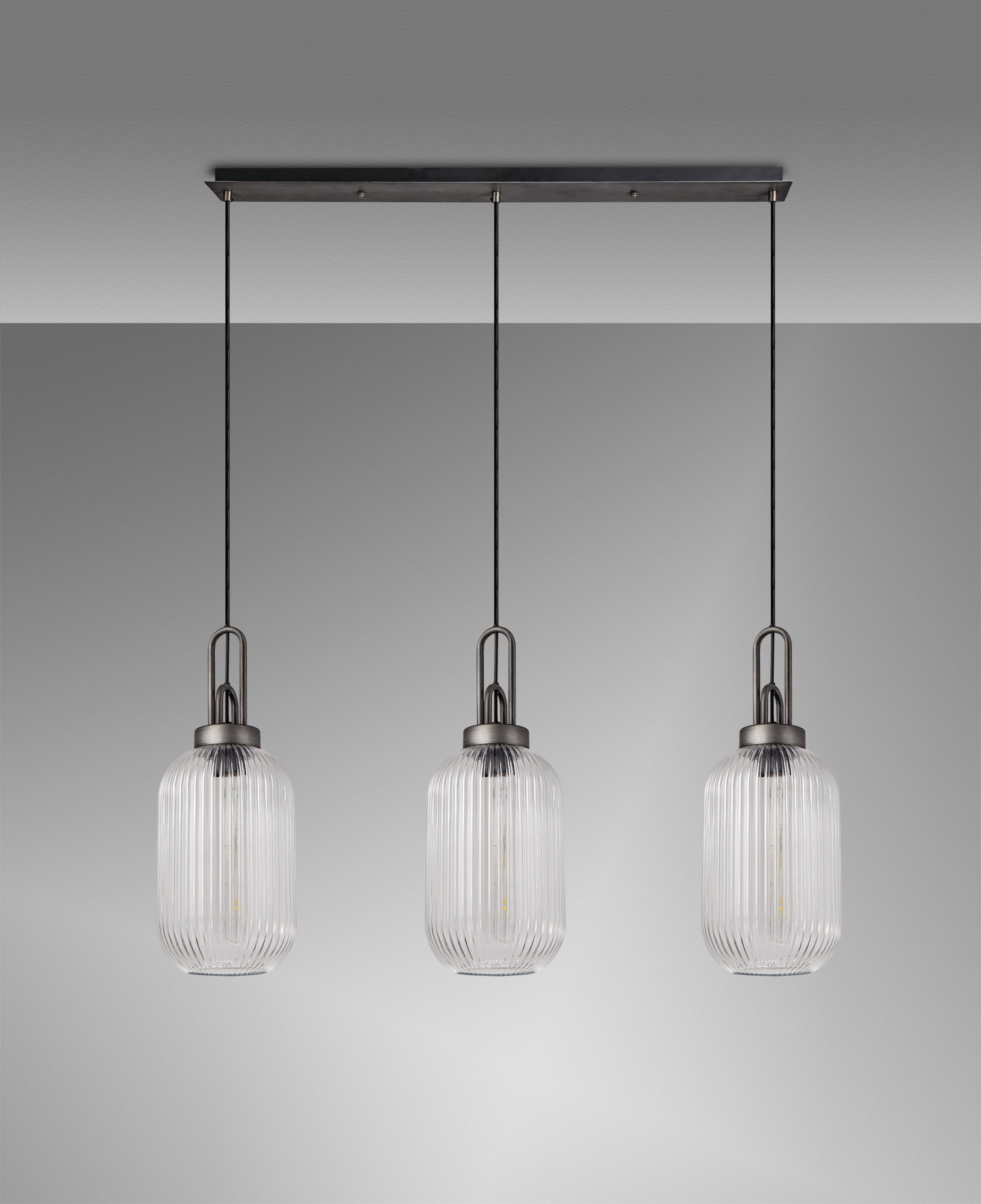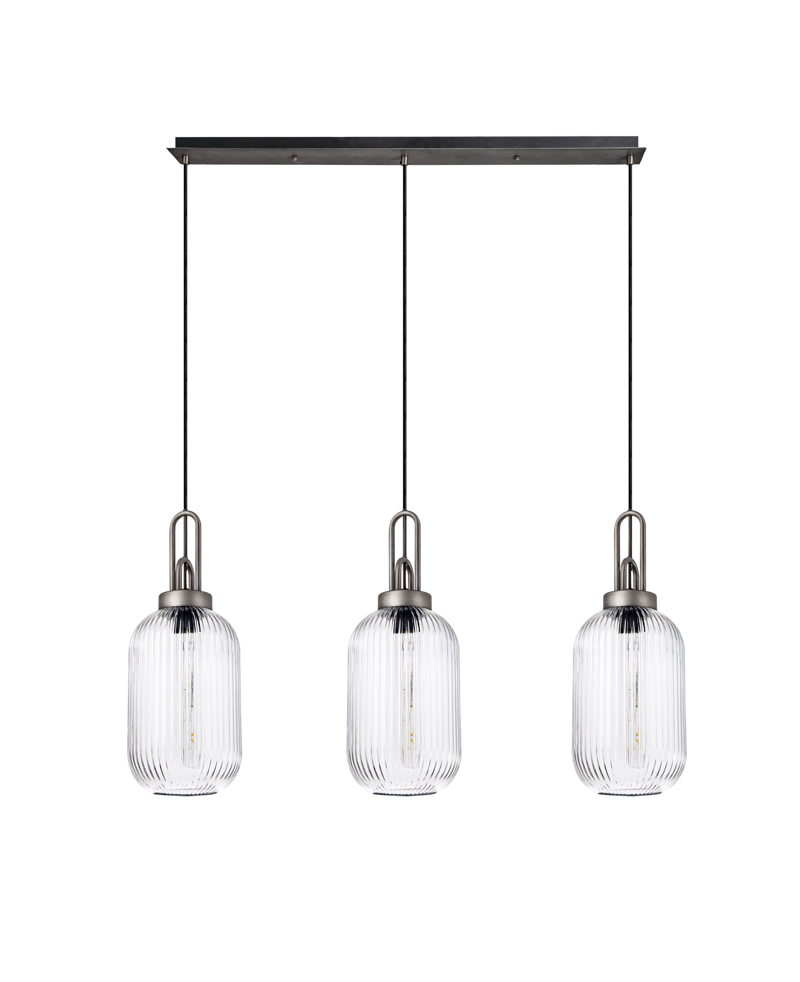 00KIT741 Reeta 3 Light Aged Pewter/Clear Tubular Glass