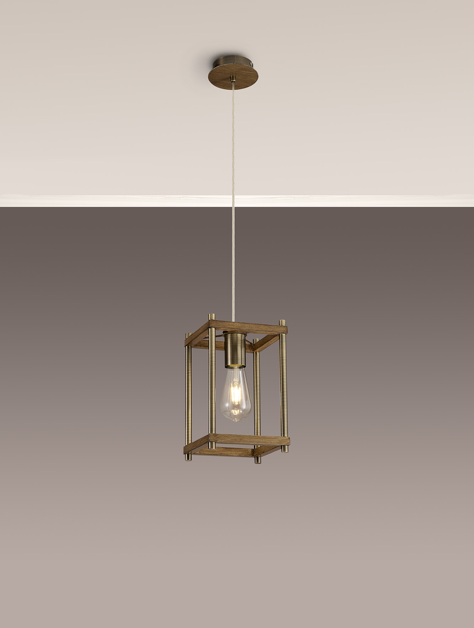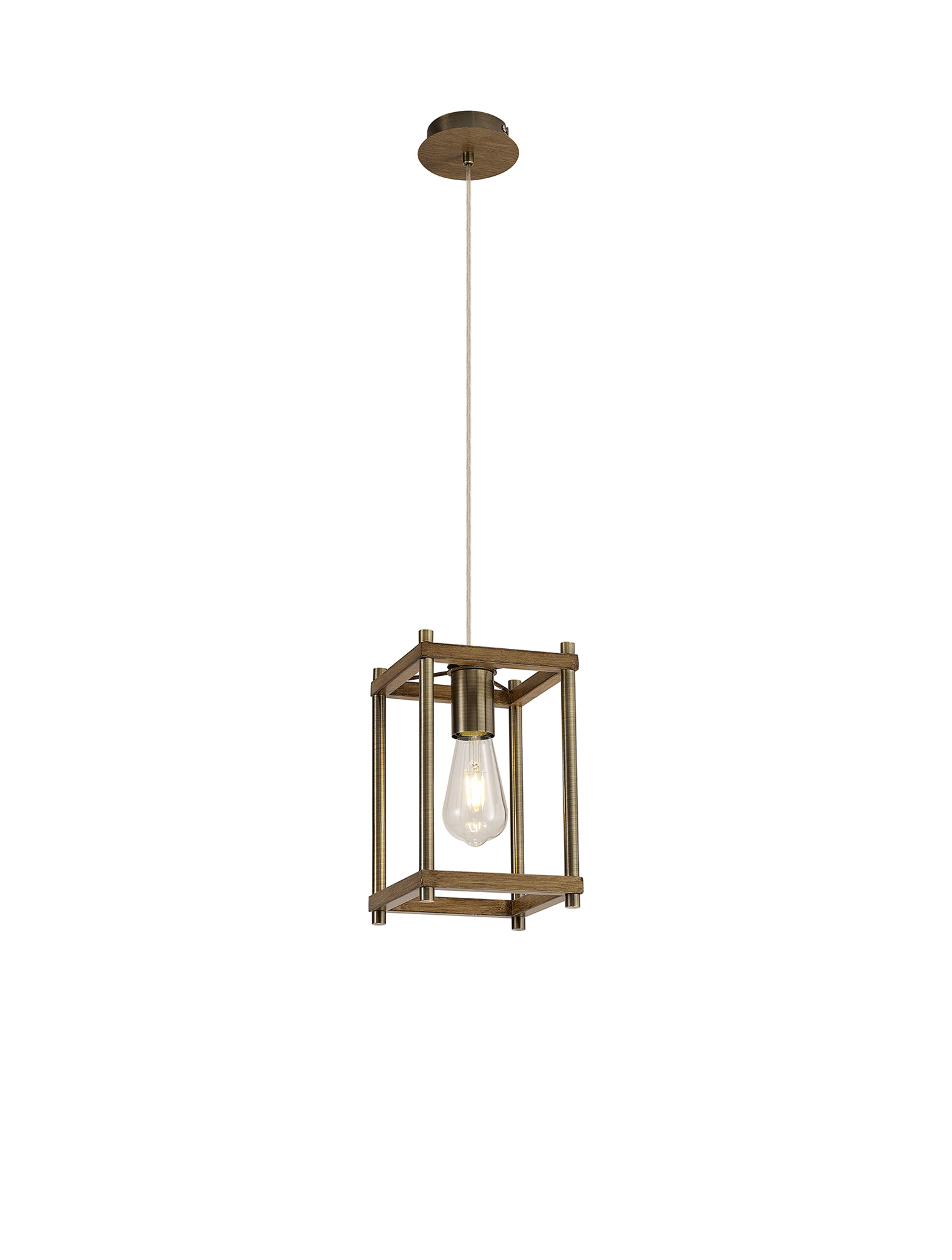 400283 Ana 1 Light Lantern Pendant Oak/Antique Brass