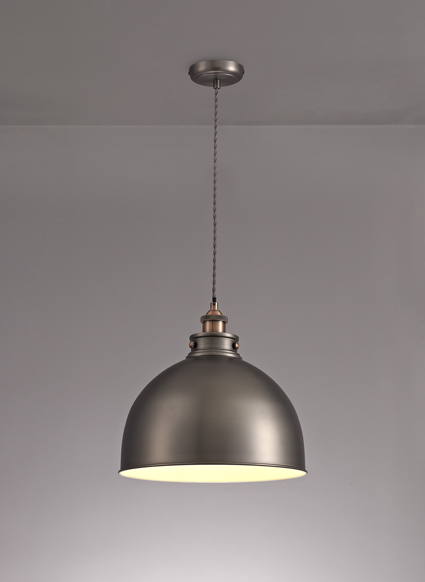 Cord is a comprehensive collection that uses varied components in antique silver & copper colour finish to present an industrialised effect. The combination gives the impression of recycled materials that have been reimagined as modernised metallic lighting fixtures to add character to their given settings.