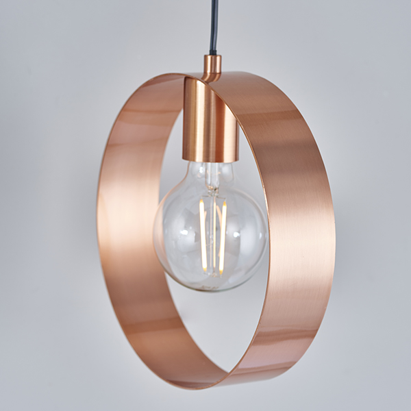 The perfect ‘must have’ Brushed Copper single pendant light, bang on-trend with a fun contemporary aesthetic, easily placeable in today’s modern homes. Pair with LED filament lamps to complete the look.