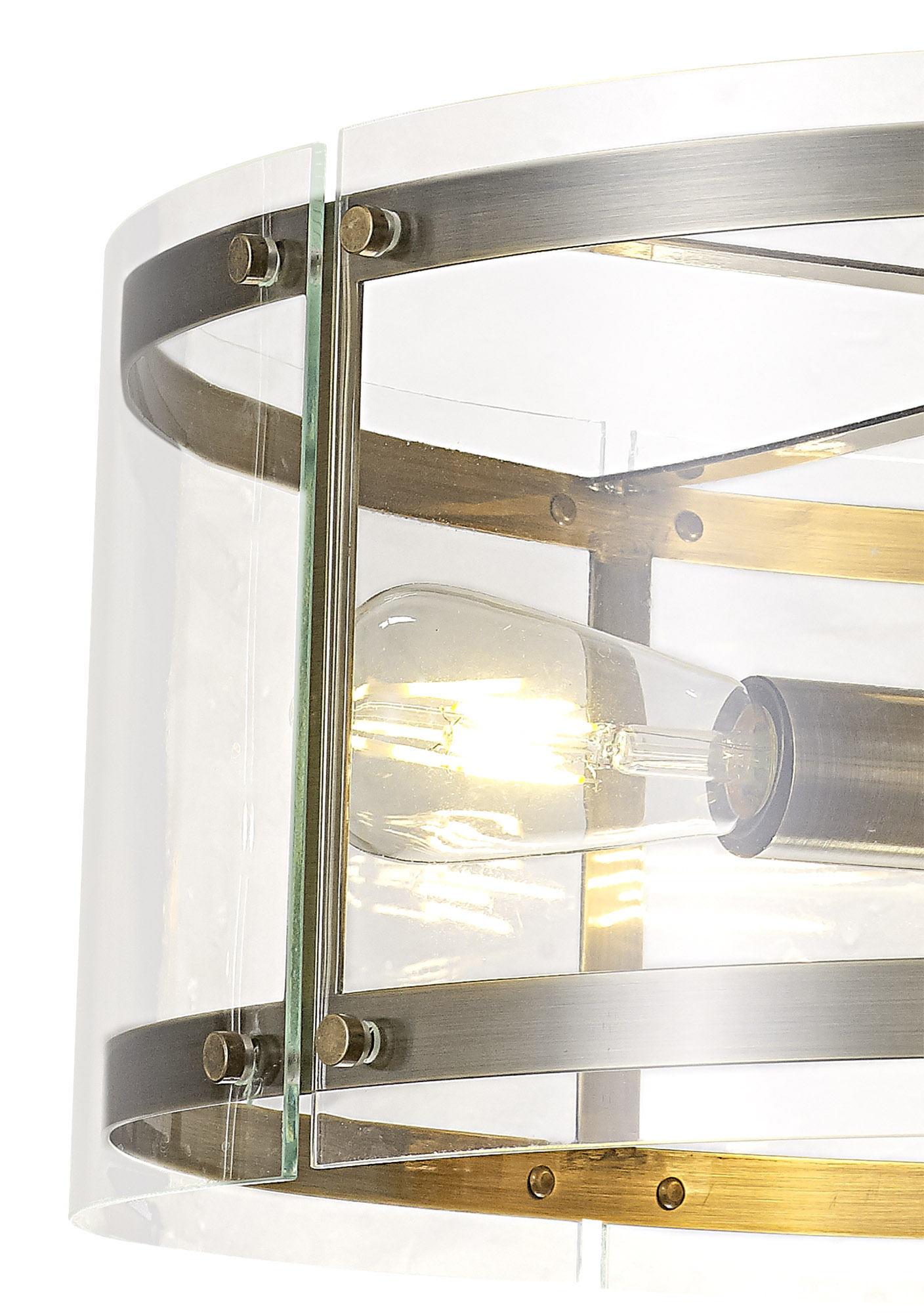 A glass lantern design with a slight twist. finished in antique brass