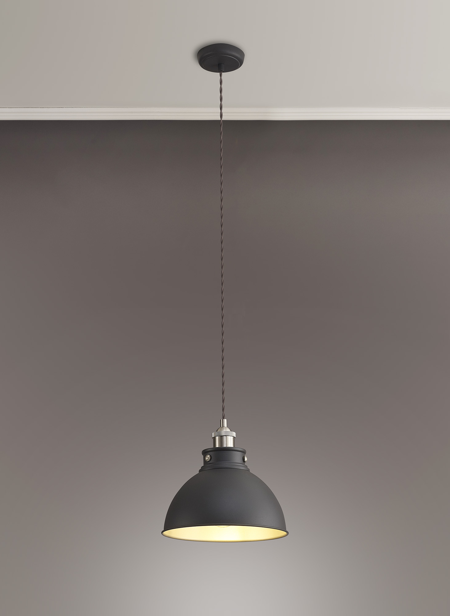 Cord is a comprehensive collection that uses varied components in graphite & satin nickel finish to present an industrialised effect. The combination gives the impression of recycled materials that have been reimagined as modernised metallic lighting fixtures to add character to their given settings.