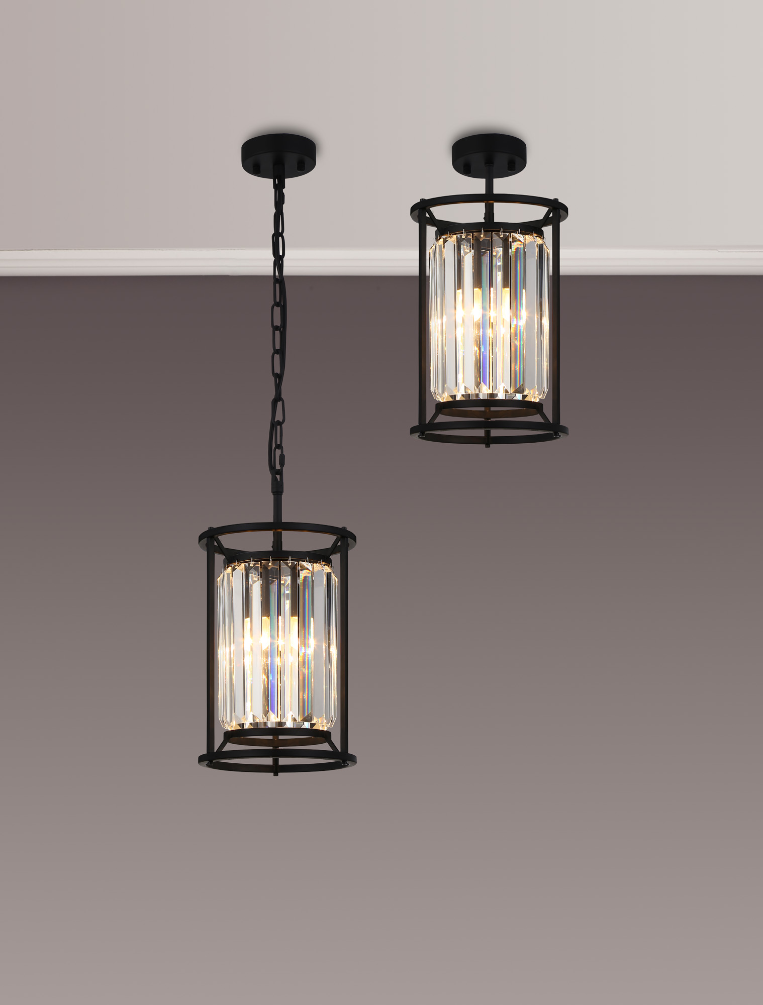 The comprehensive selection also includes flush ceiling lights, a wall, table and floor lamp. The high quality, long rectangular, clear crystals are hung around the E14 and E27 lamp holders which creates a dazzling effect when illuminated but still maintains a stunning visual when the light is not in use. Available in three colour finishes; antique brass, polished nickel and satin black the regality of this extensive range can be bring class and elegance to its given setting.