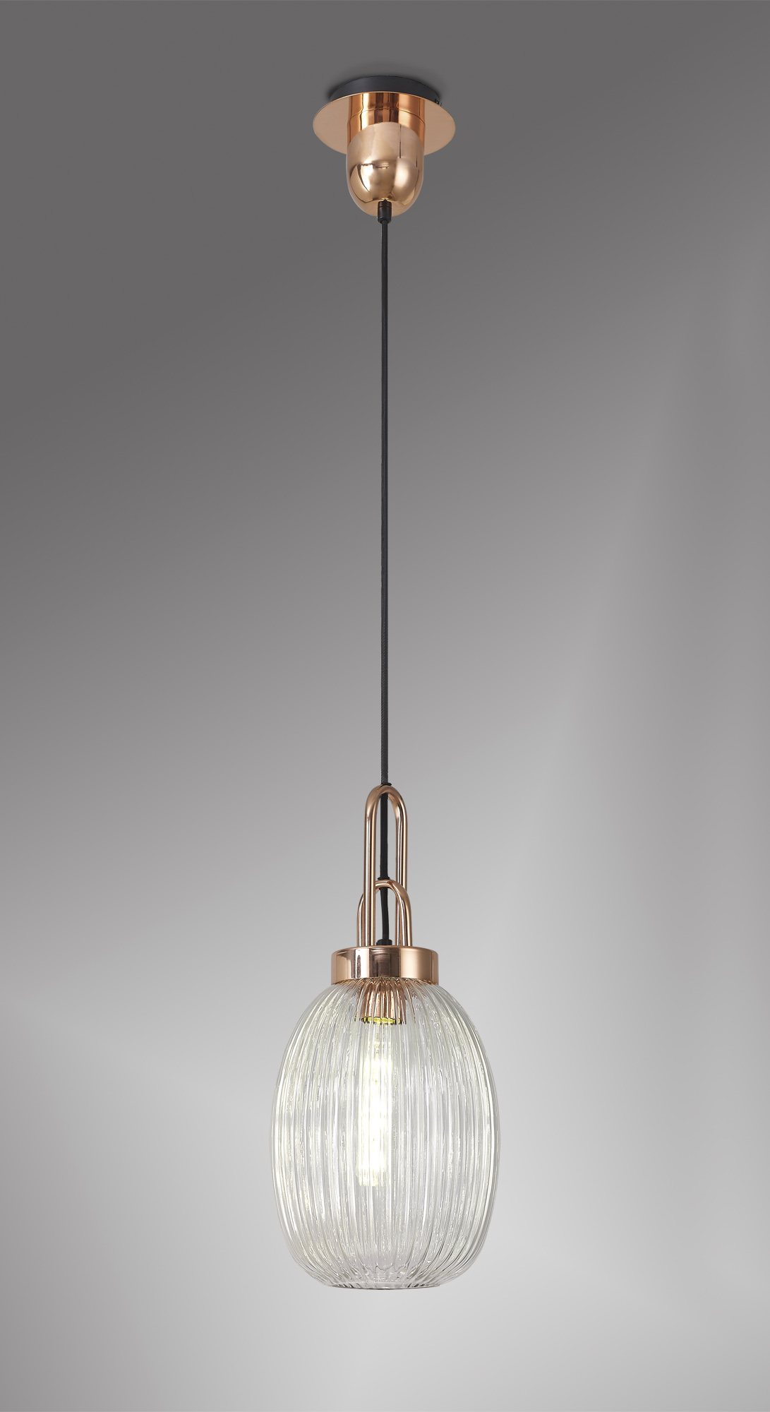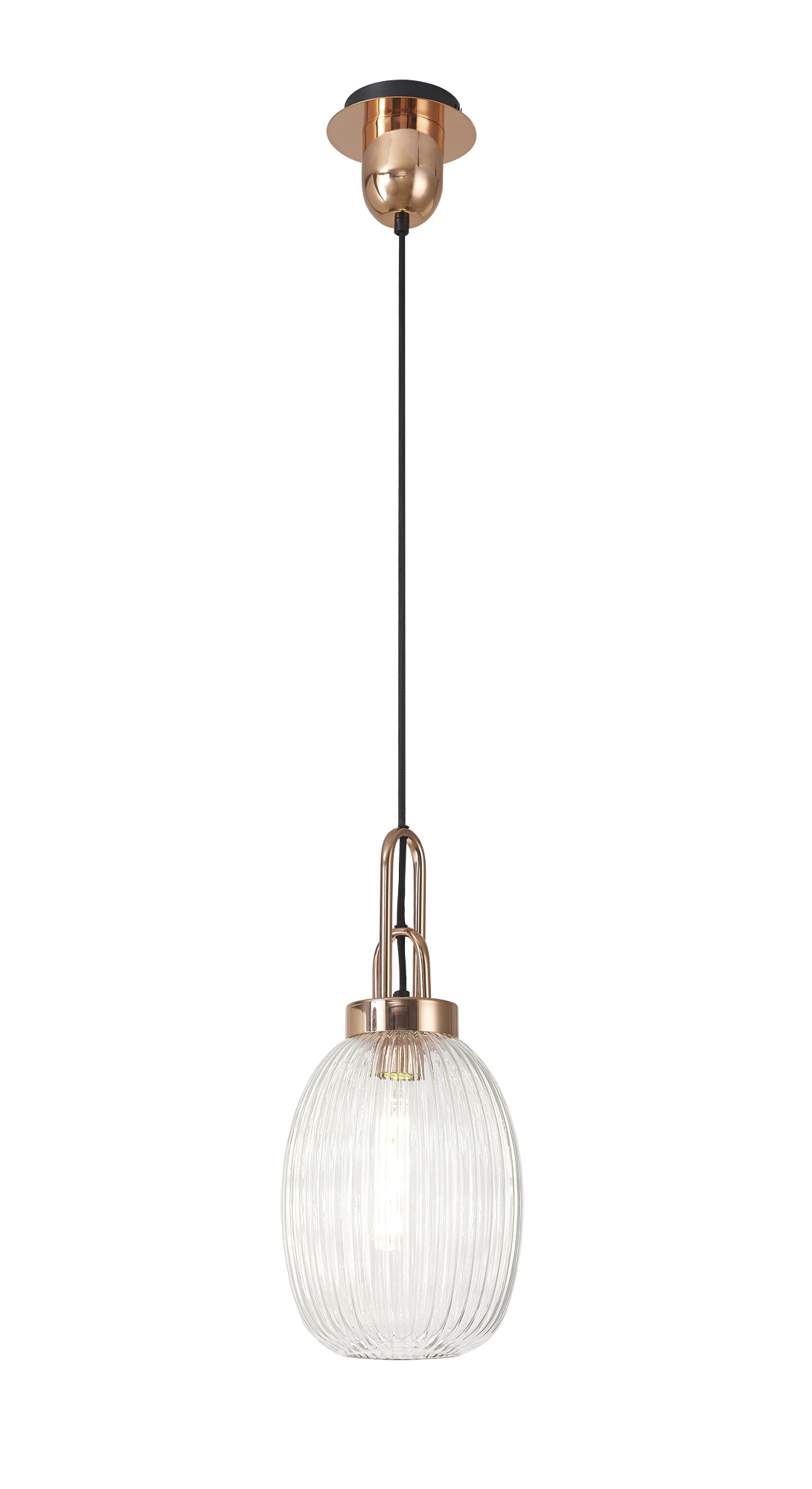 00KIT0534 Reeta Single Pendant Copper With Almond Clear Ribbed Glass