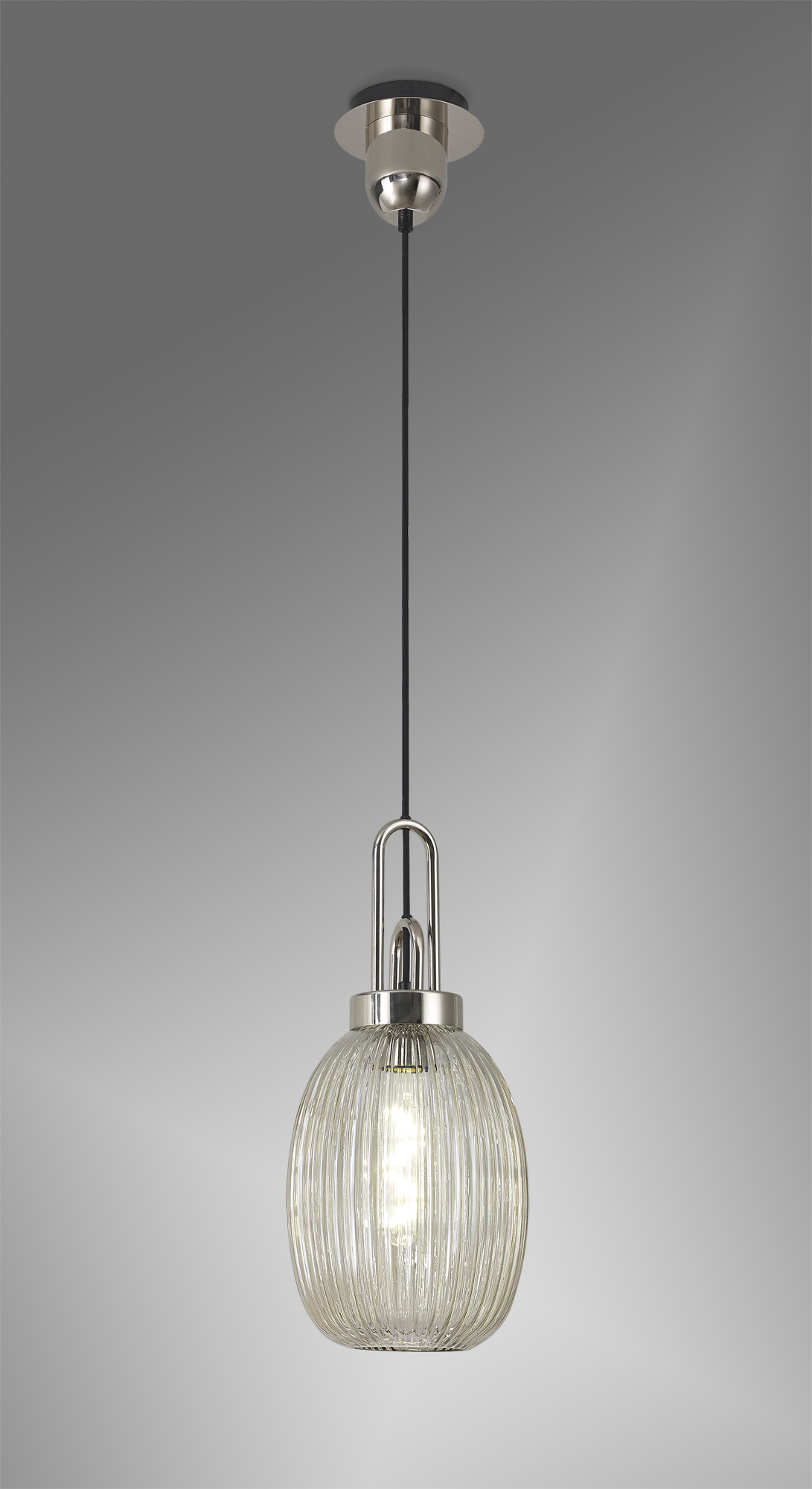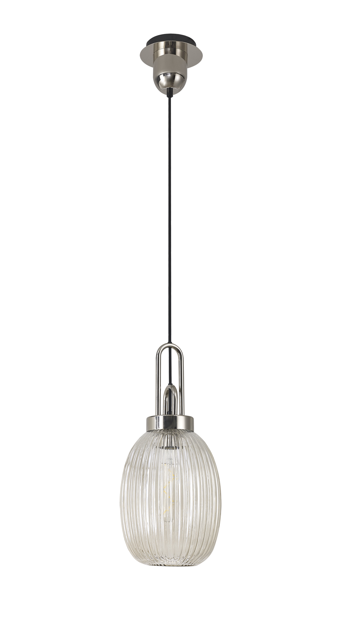 00KIT0524 Reeta 1 Light Polished Nickel Pendant With Almond Champagne Ribbed Glass