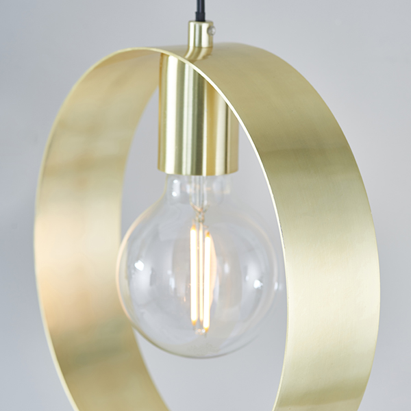 The perfect ‘must have’ Brushed Brass single pendant light, bang on-trend with a fun contemporary aesthetic, easily placeable in today’s modern homes. Pair with LED filament lamps to complete the look.