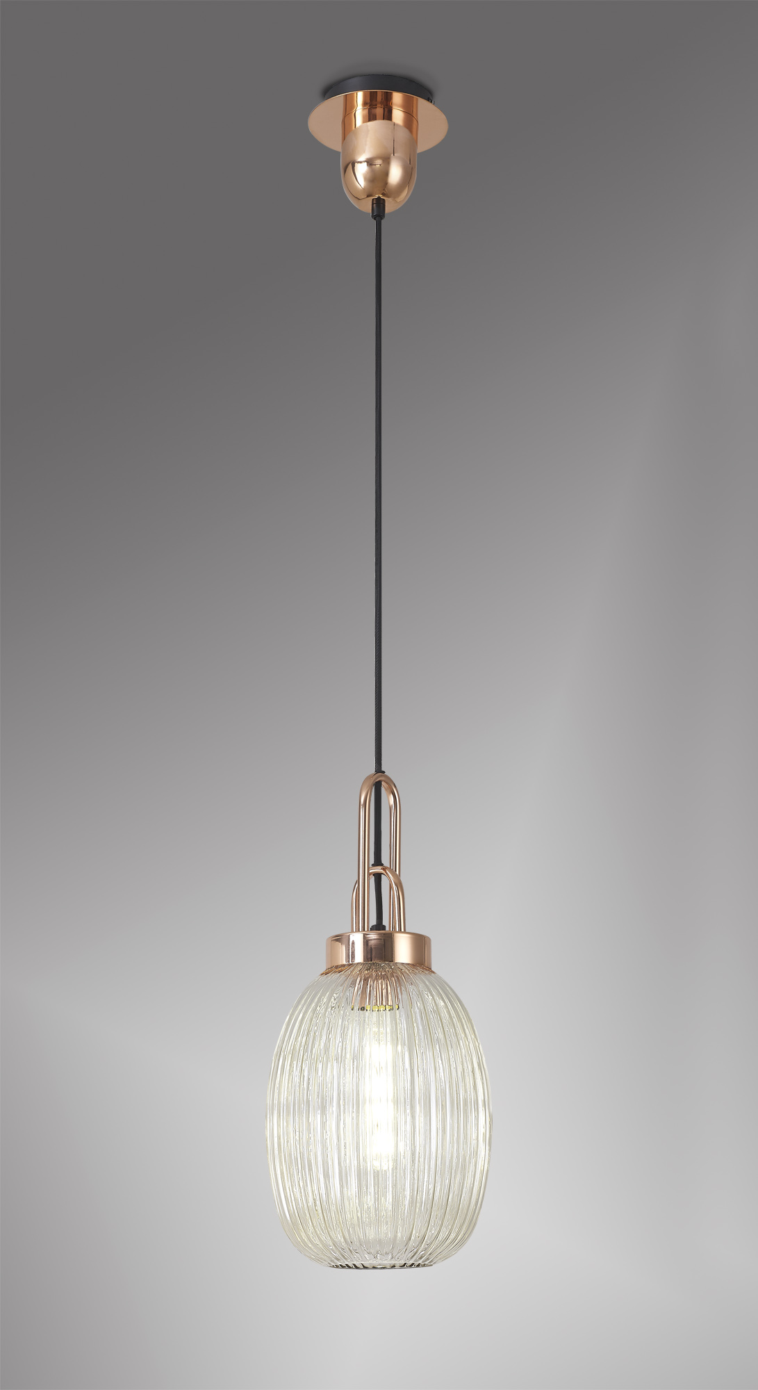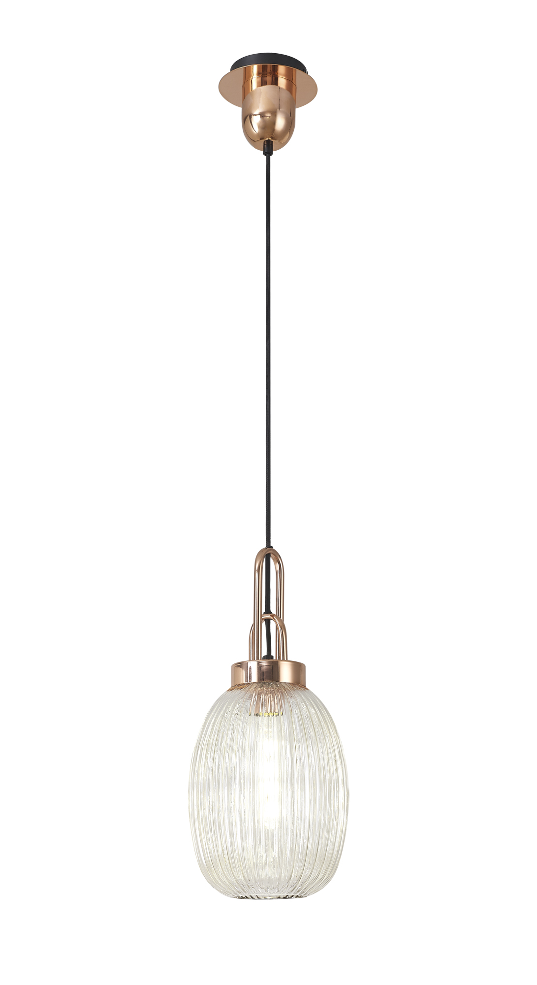 00KIT0536 Reeta 1 Light Copper Pendant With Almond Champagne Ribbed Glass