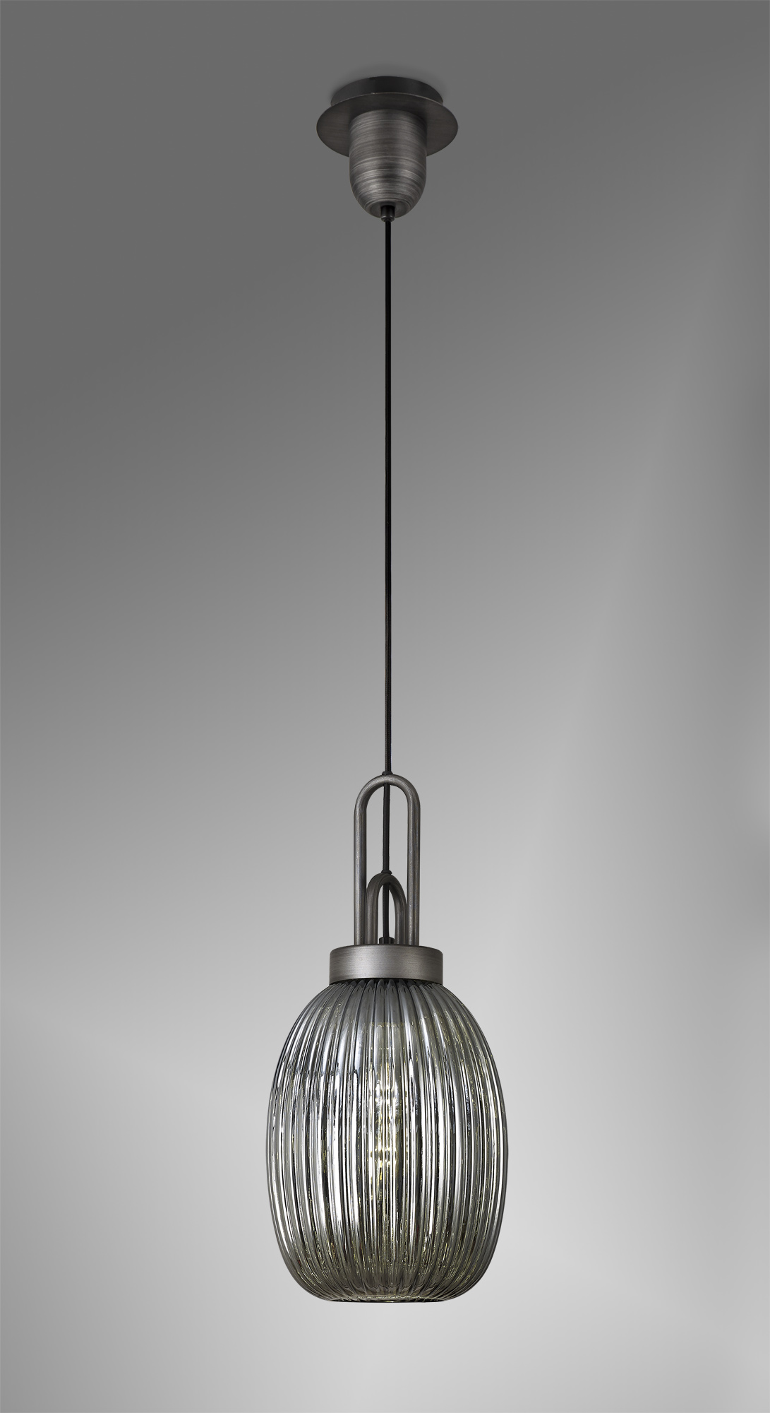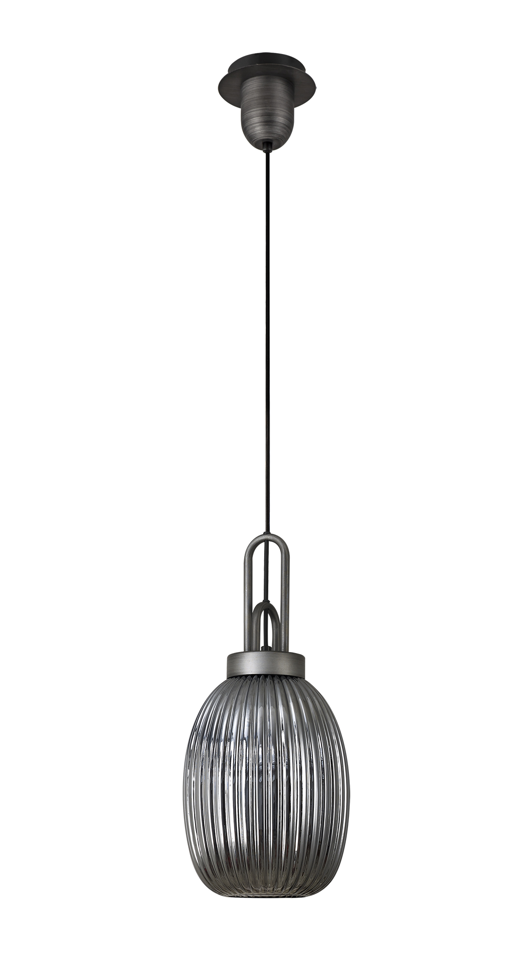 00KIT0568 Reeta 1 Light Aged Pewter Pendant With Almond Smoked Ribbed Glass