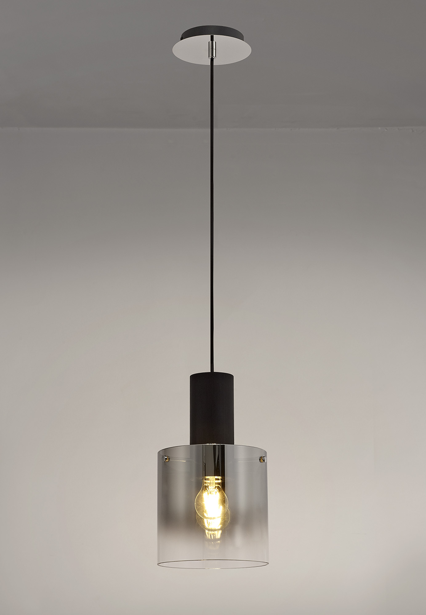 In keeping with our reputation for uncommon stand out designs, Blake capitalises on the intriguing ombré effect by applying the finish to substantial smoked to black glass cylinders which sit around the E27 lampholders. Due to the initial overwhelming success this range has been expanded and the feature has been used to manufacture a wider range of ceiling lights, pendants and complementing wall and table lamp now