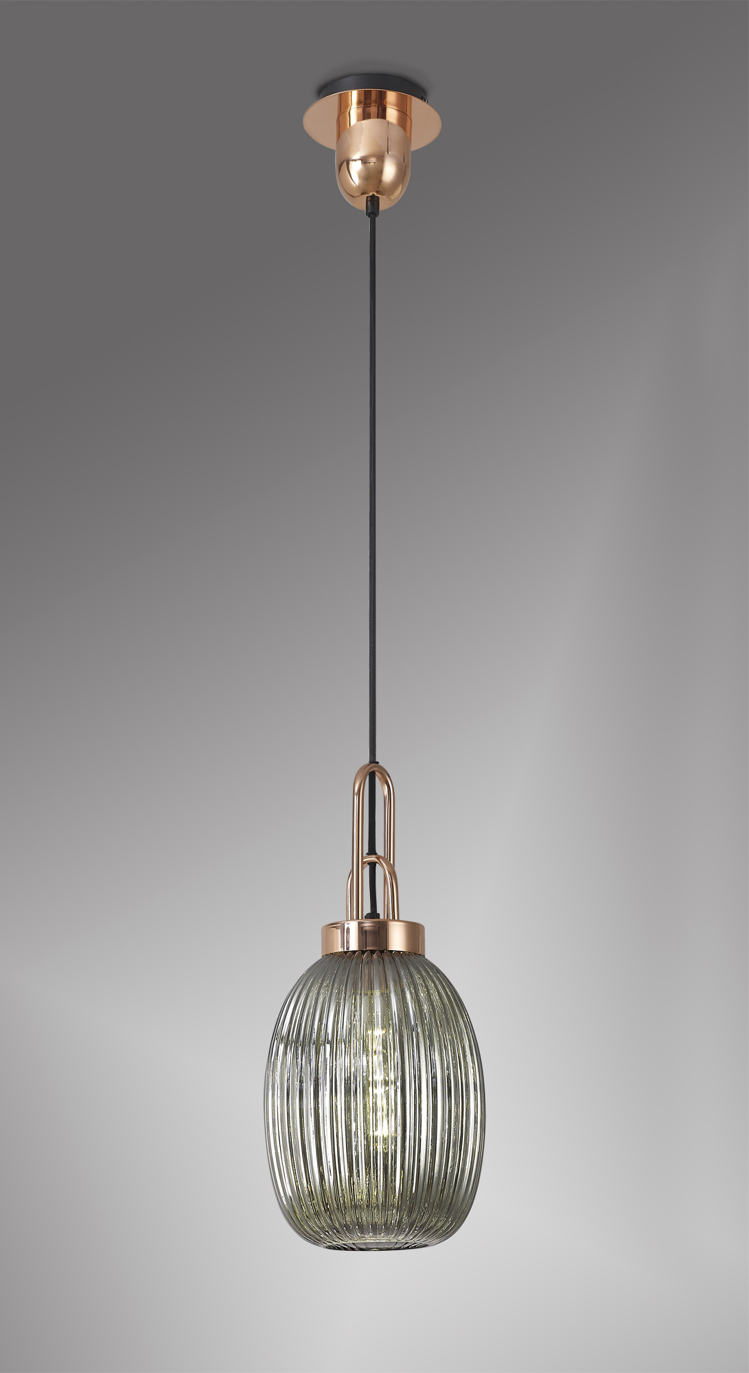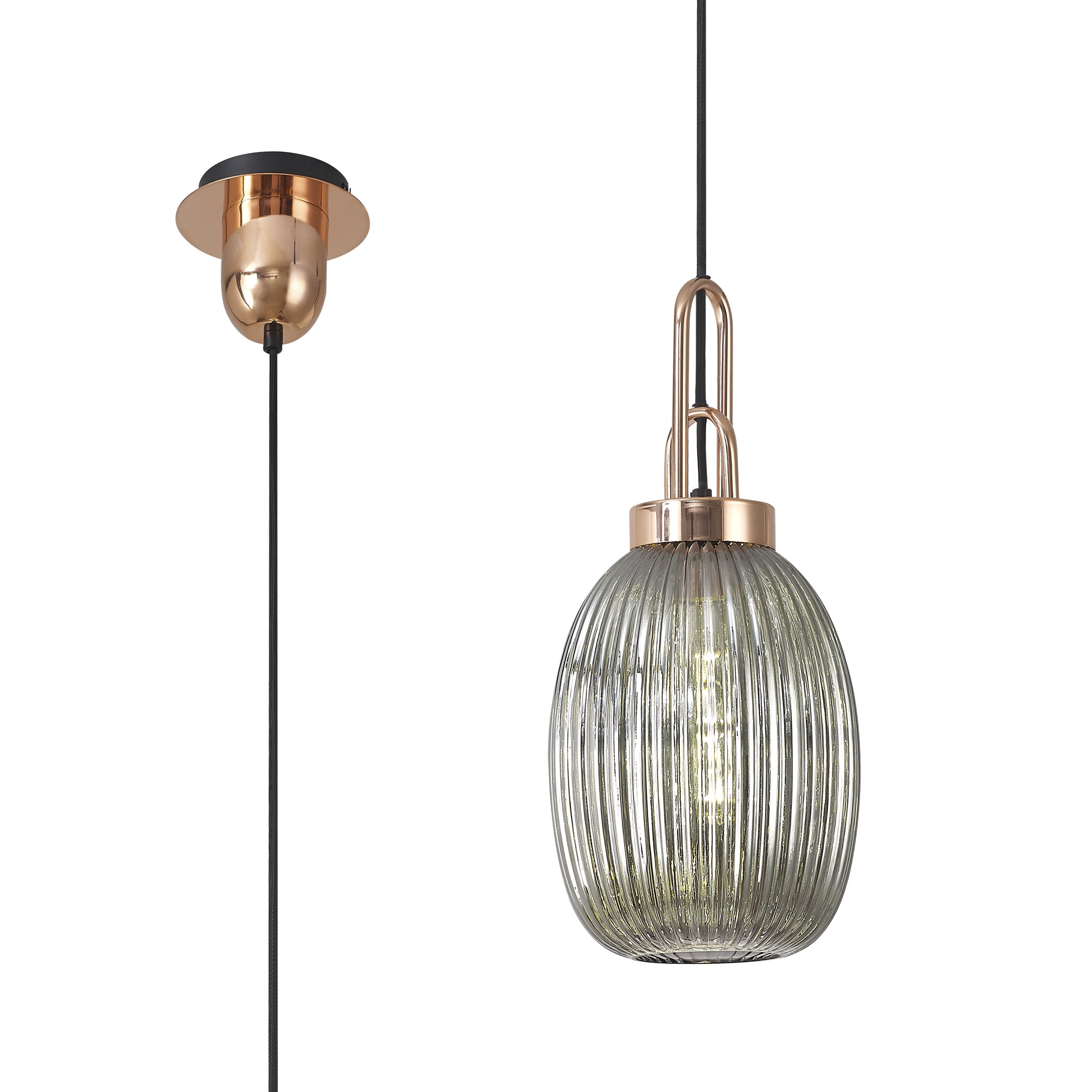 00KIT0535 Reeta Single Pendant Copper With Almond Smoked Ribbed Glass