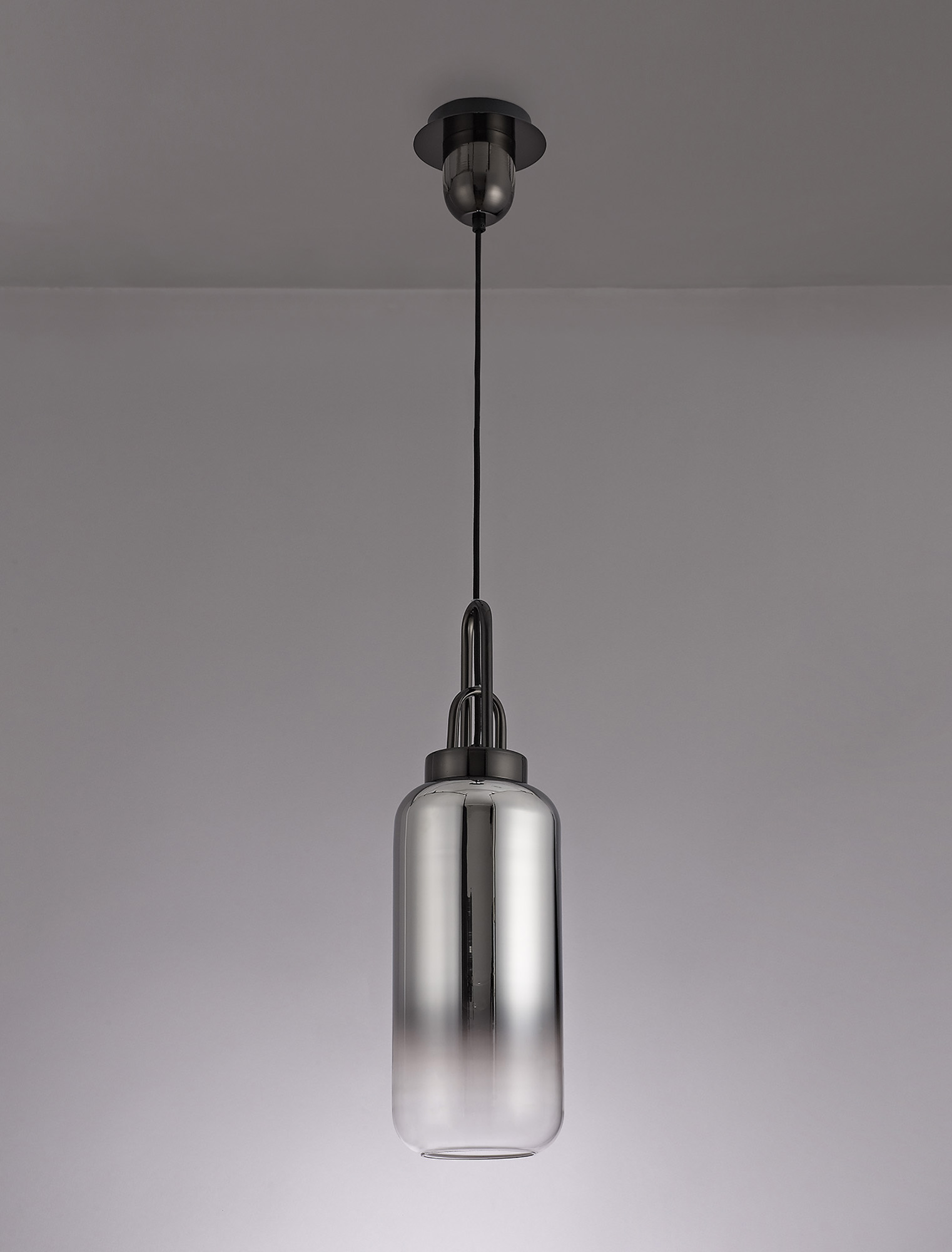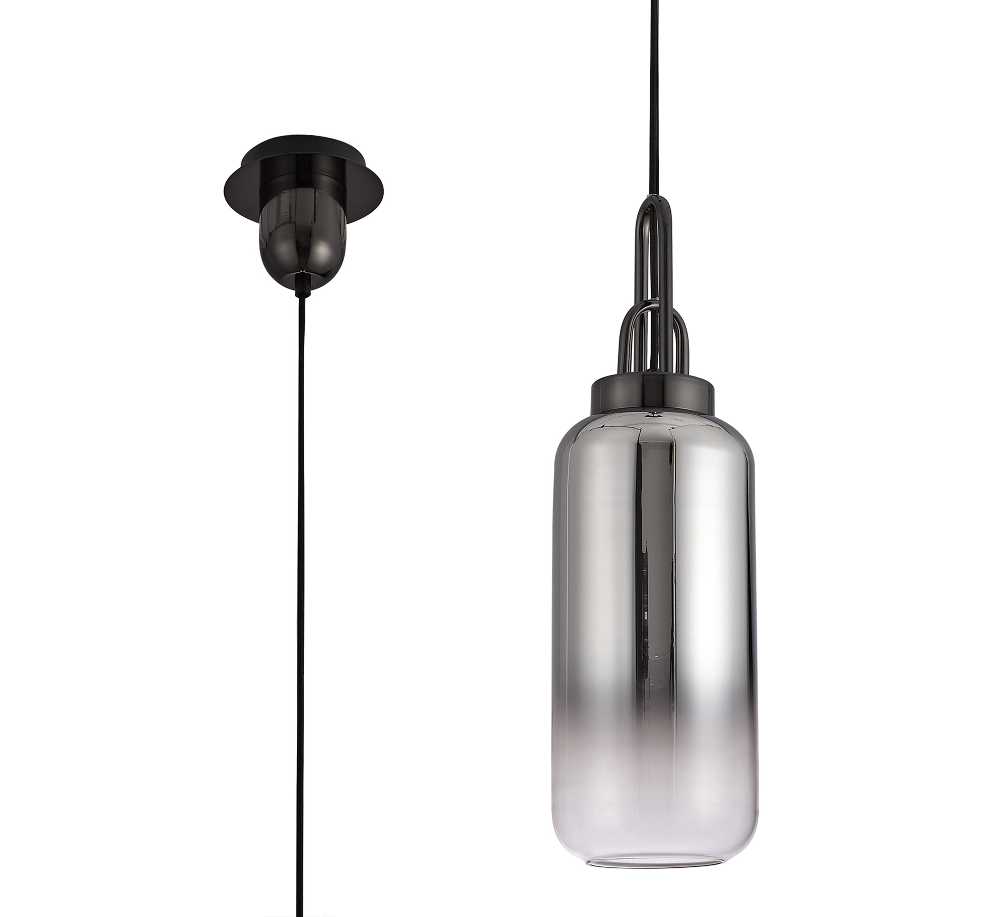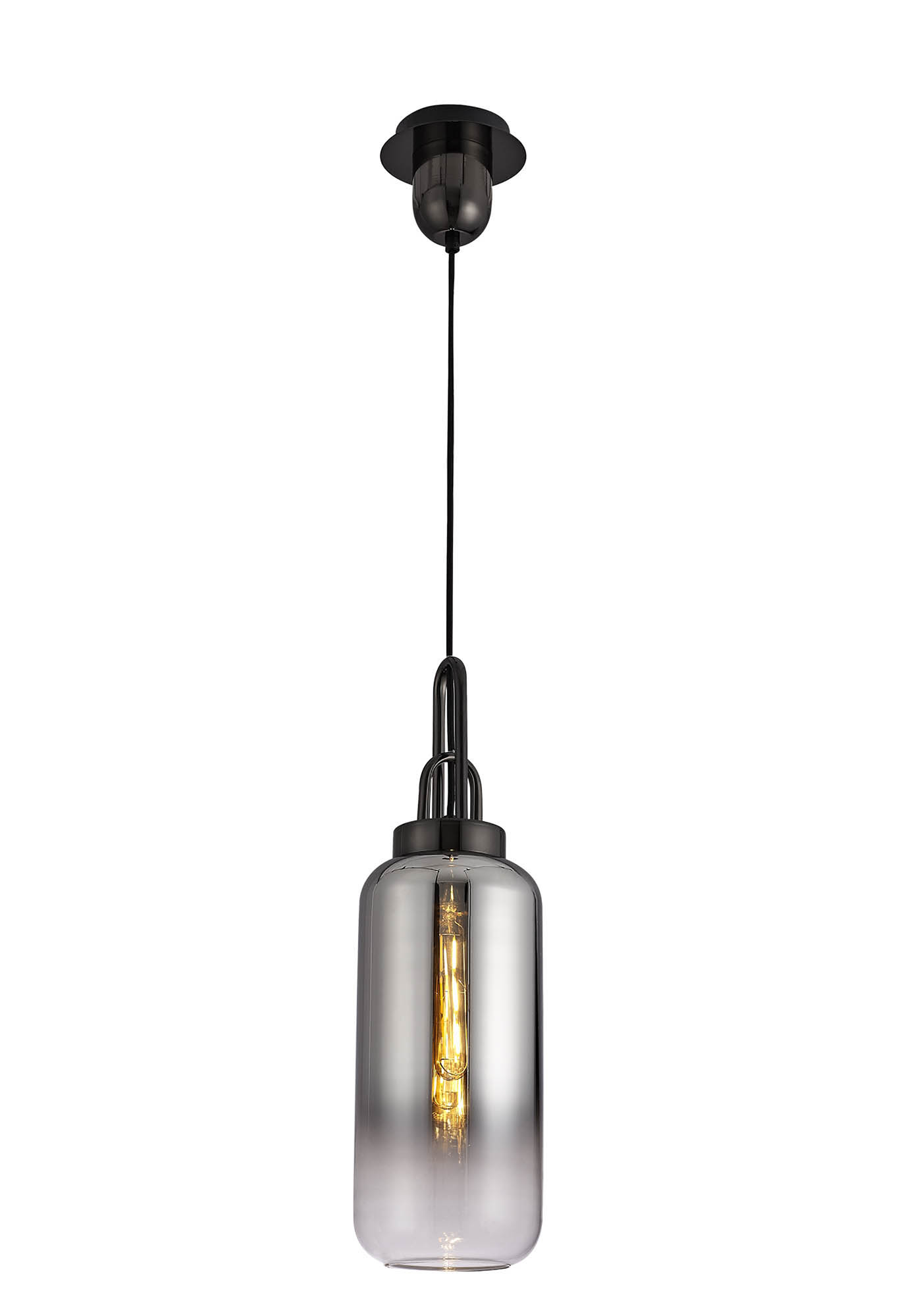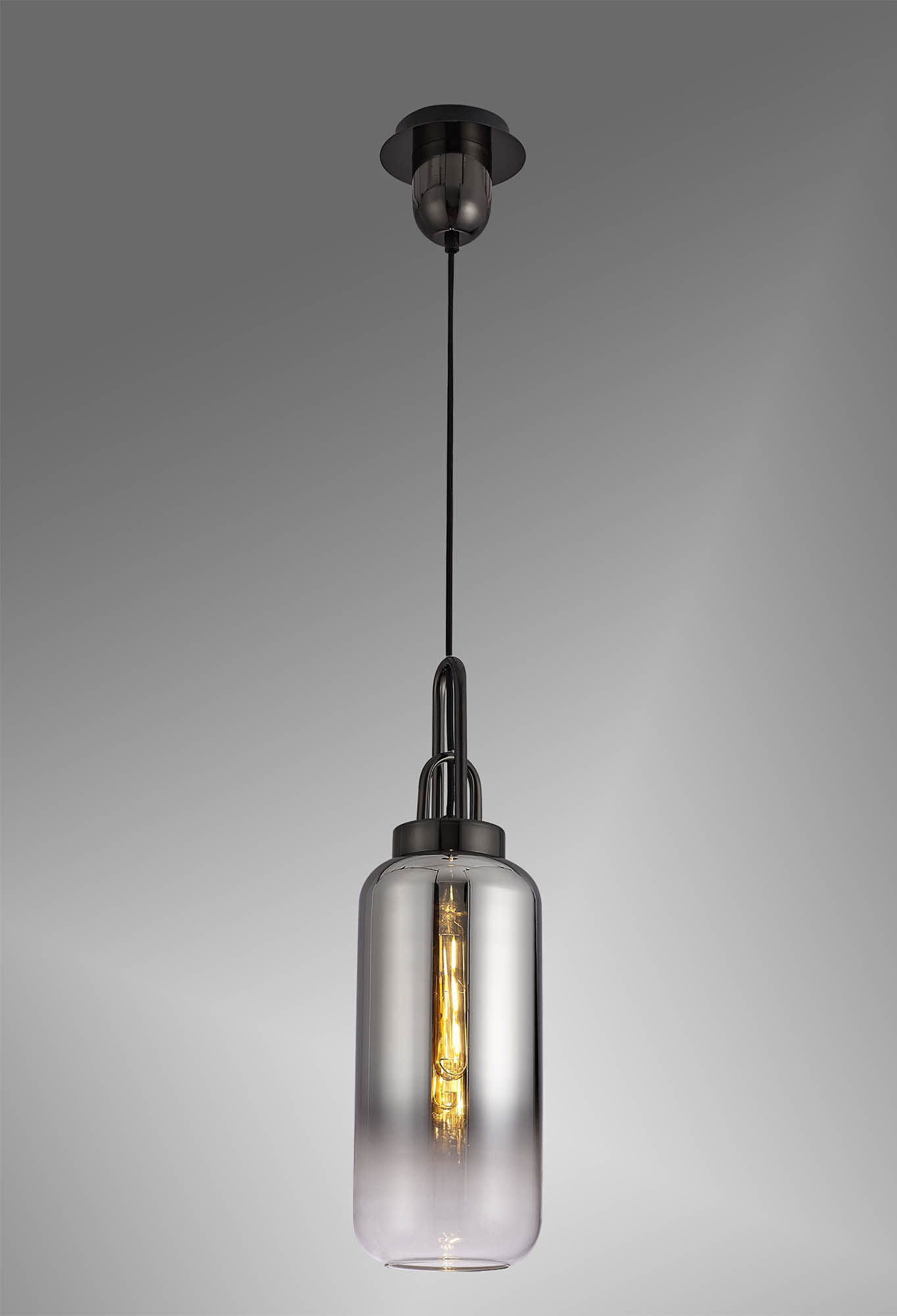 00KIT0351 Reeta 1 Light Pendant Matt Black/Smoked Glass
