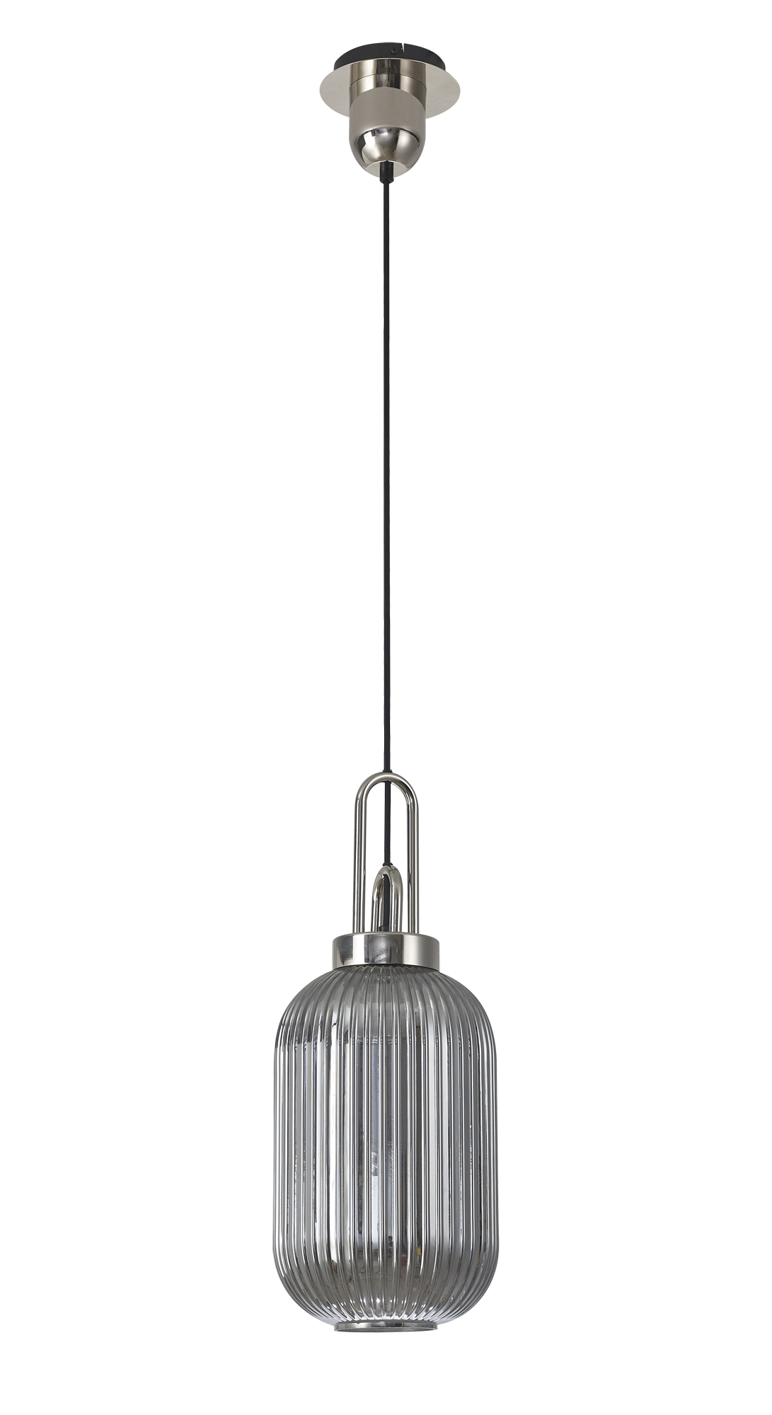 00KIT520 Reeta Single Pendant Polished Nickel with Smoked Tubular Glass