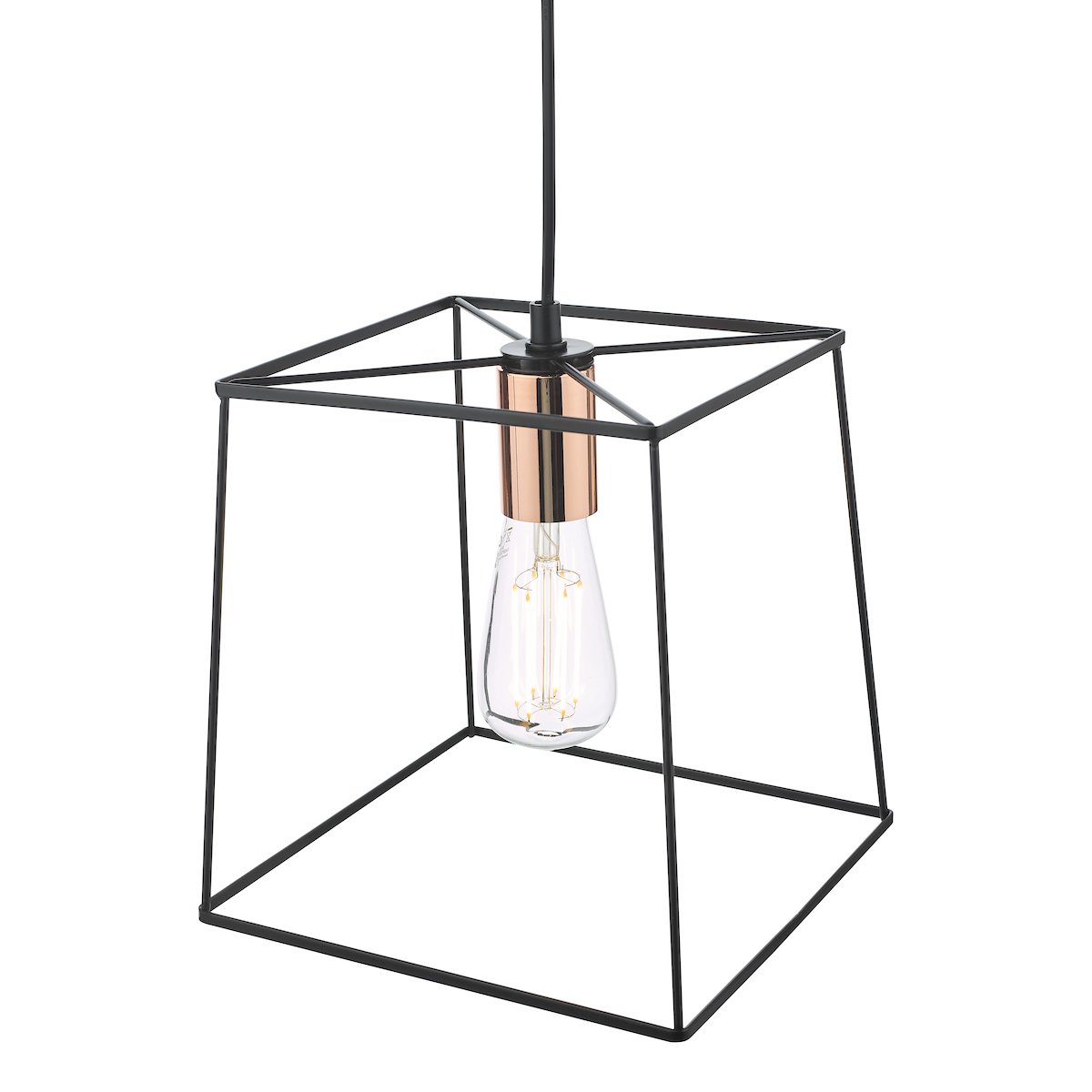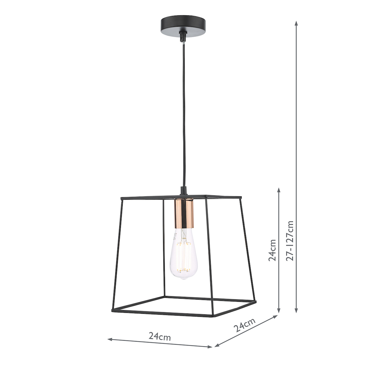 Black Copper Wire Pendant, Create a sense of drama with the Tower single cage pendant, which features a wire frame box in matt black and copper. Matching 6 light cluster pendant available.