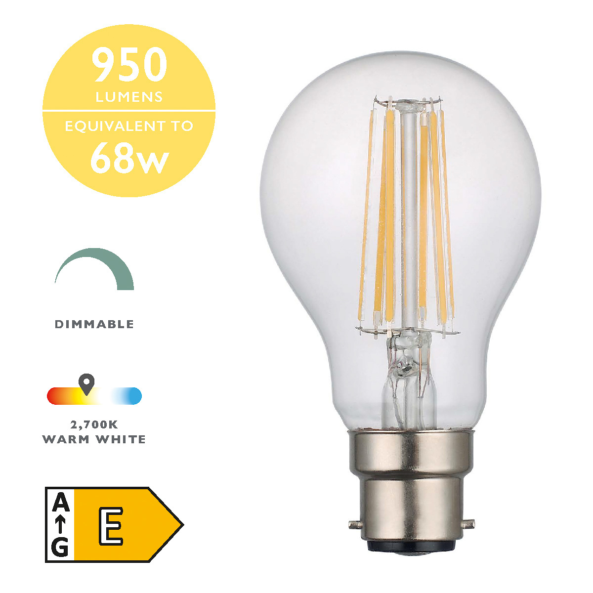 8w BC LED Gls Lamp 950lms Clear
