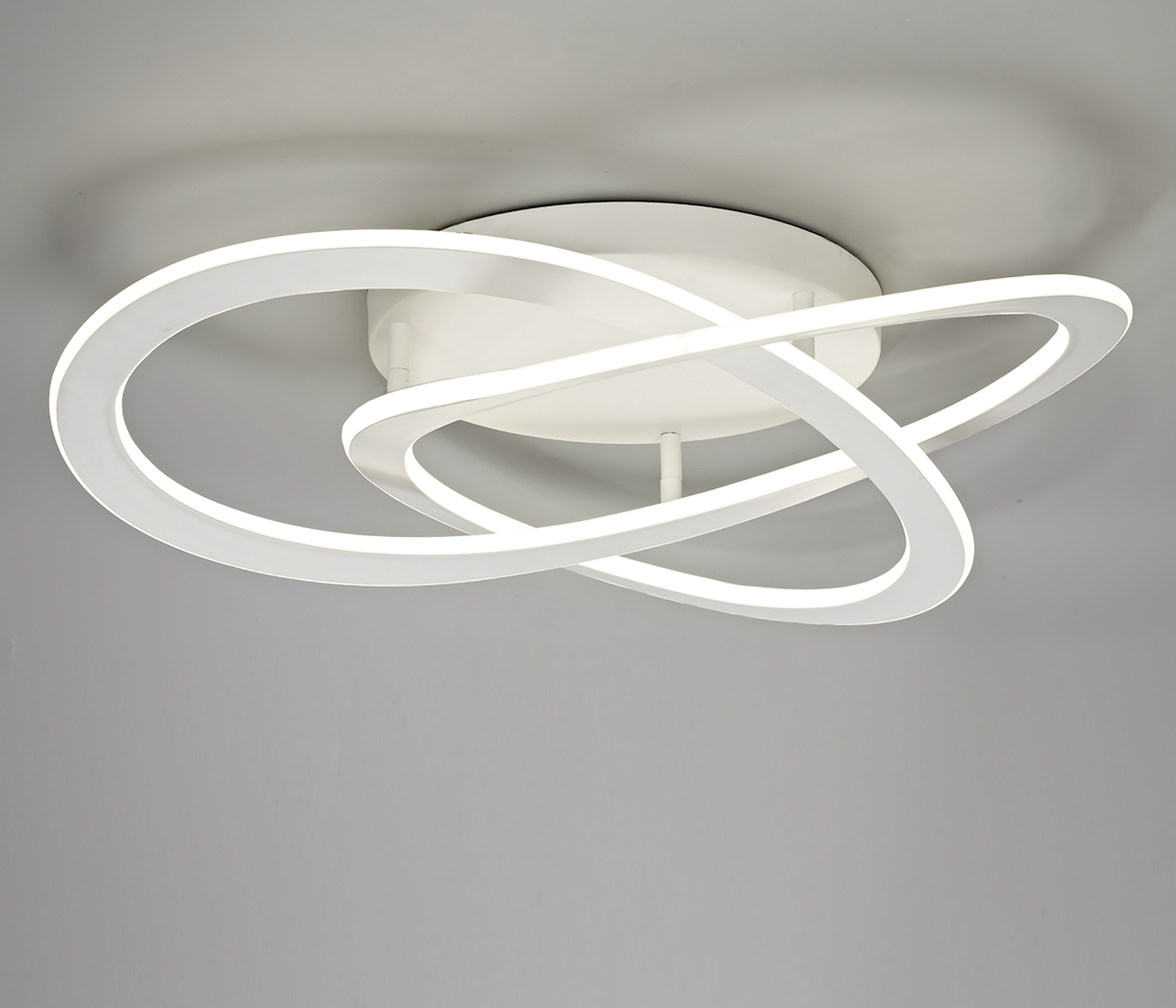 The Saturn range derives its name from the visual concept of its unique design. White metal rings are looped together imitating the distant view of planetary asteroid belts. Available as either a pendant light or ceiling light each fitting boasts an impressive wattage output providing ample illumination. The view beneath the lights forms a fluid triquetra shape ensuring an intriguing shape from every angled view of the lights.